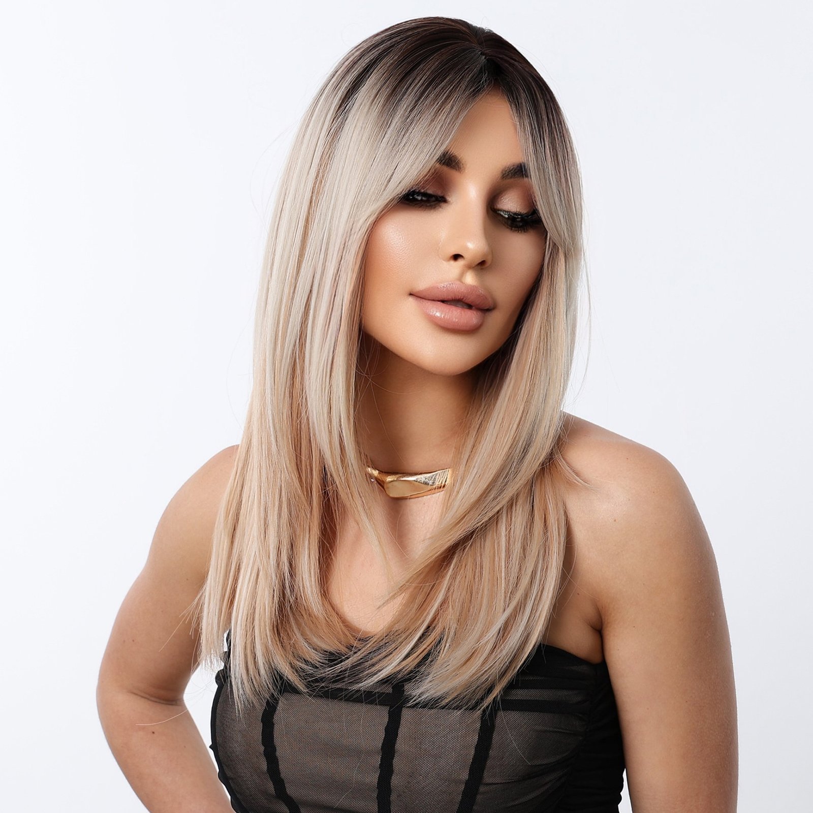 欧美跨境热销金色假发女士日常齐刘海长直发化纤高温丝全头套假发