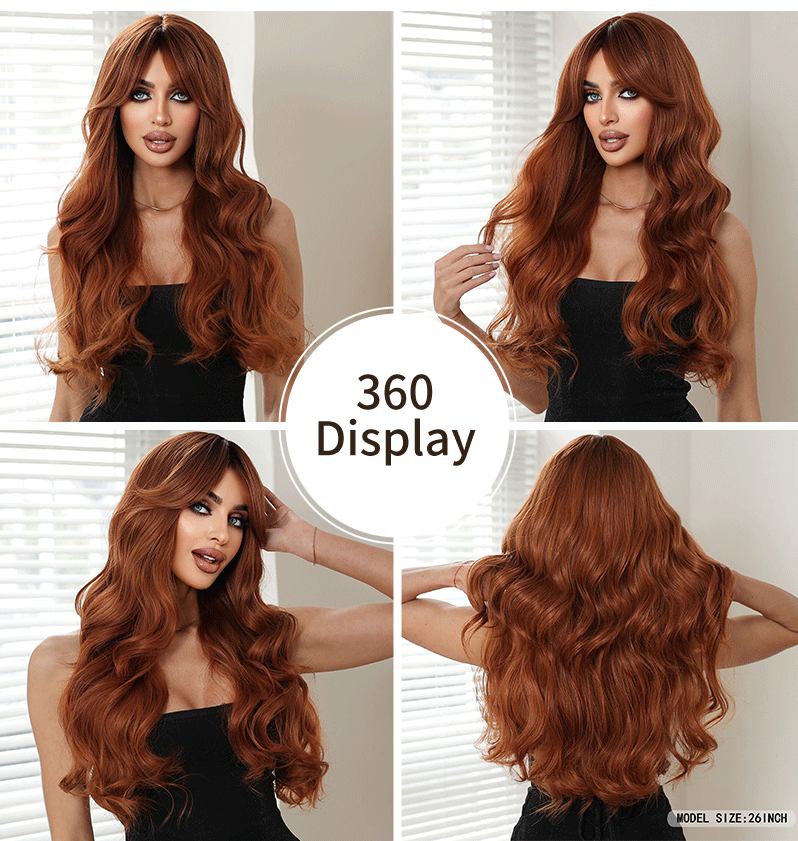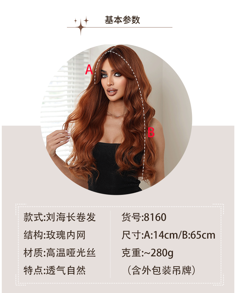 Be the first to review “欧美跨境新款假发女八字刘海棕色大波浪长卷发日常机制化纤全头套”