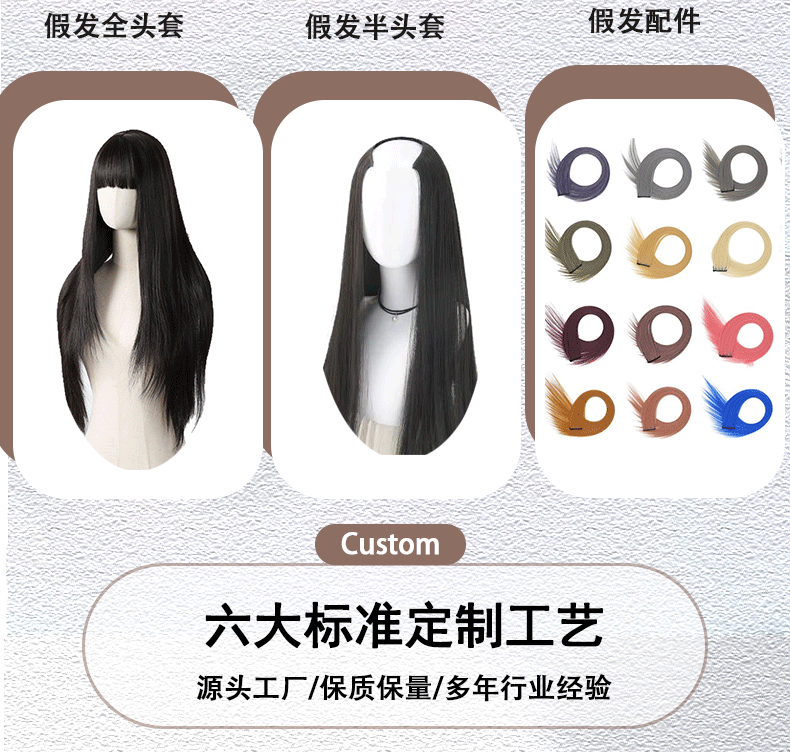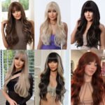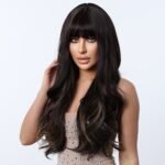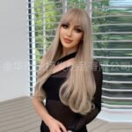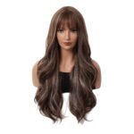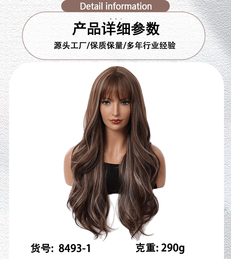 Be the first to review “欧美跨境新款长卷发假发女士齐刘海全头套黑棕色多色机制化纤假发”