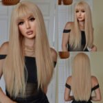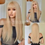 Be the first to review “欧美跨境热销金色假发女士日常齐刘海长直发化纤高温丝全头套假发”