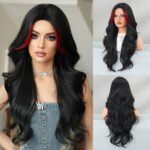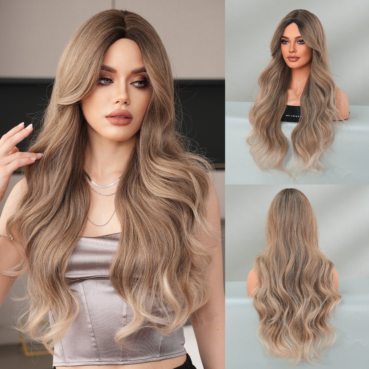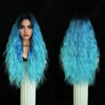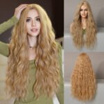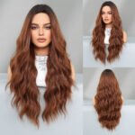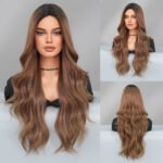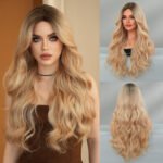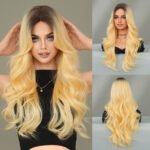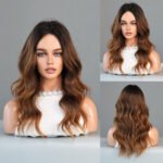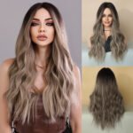 Model: Ombre Long Wavy Wig Synthetic Hair Middle Part Wig