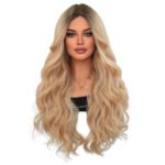 Glamorous Ombre Black to Blonde Water Wave Curly Wig – Full Synthetic Headpiece
