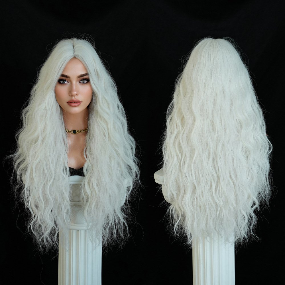 Fashion women long curly hair silver gray highlight wig full head big wave street Christmas Halloween wig