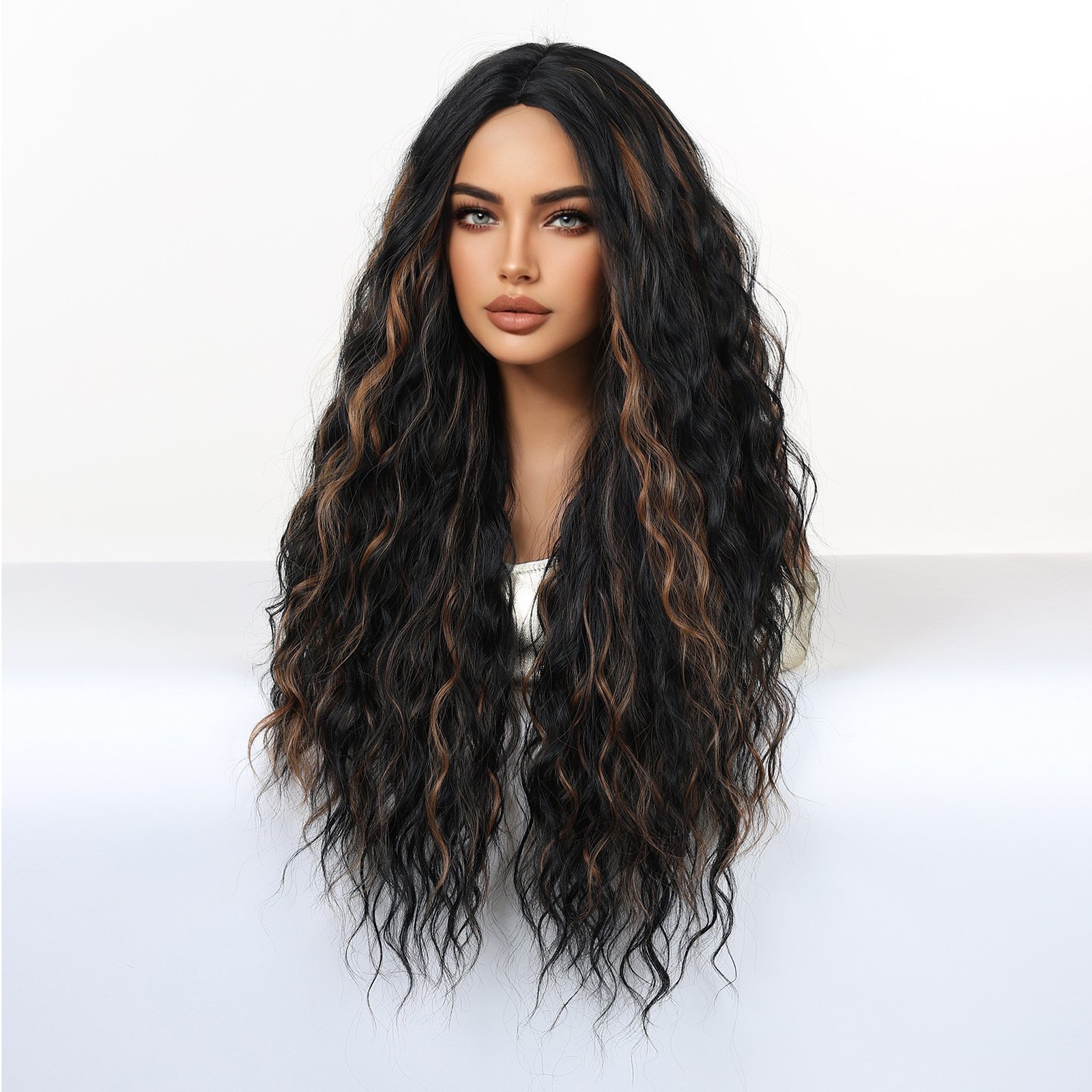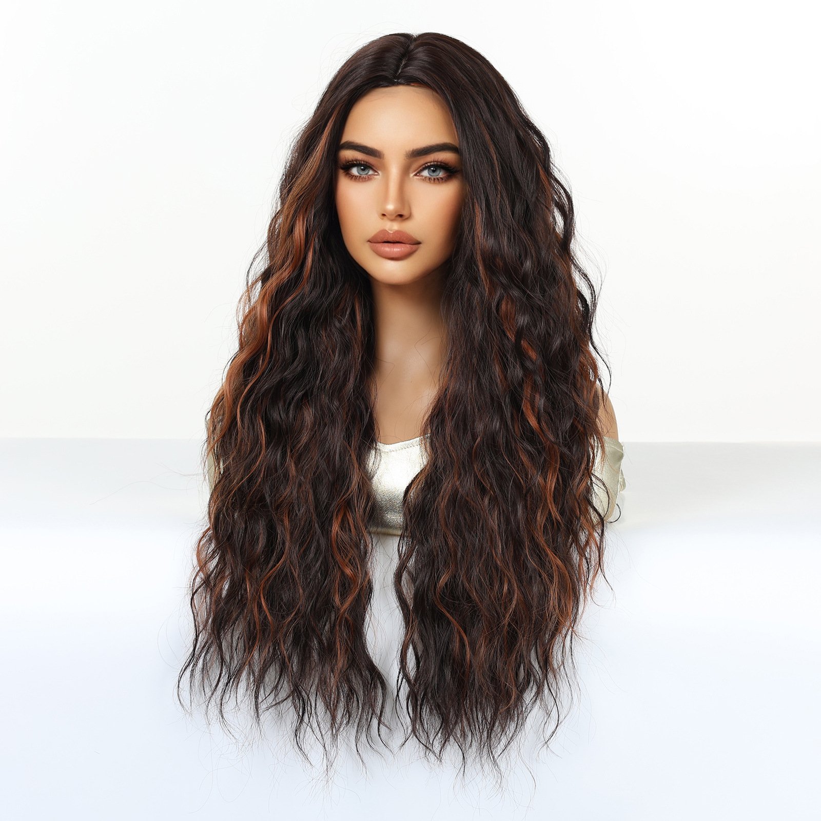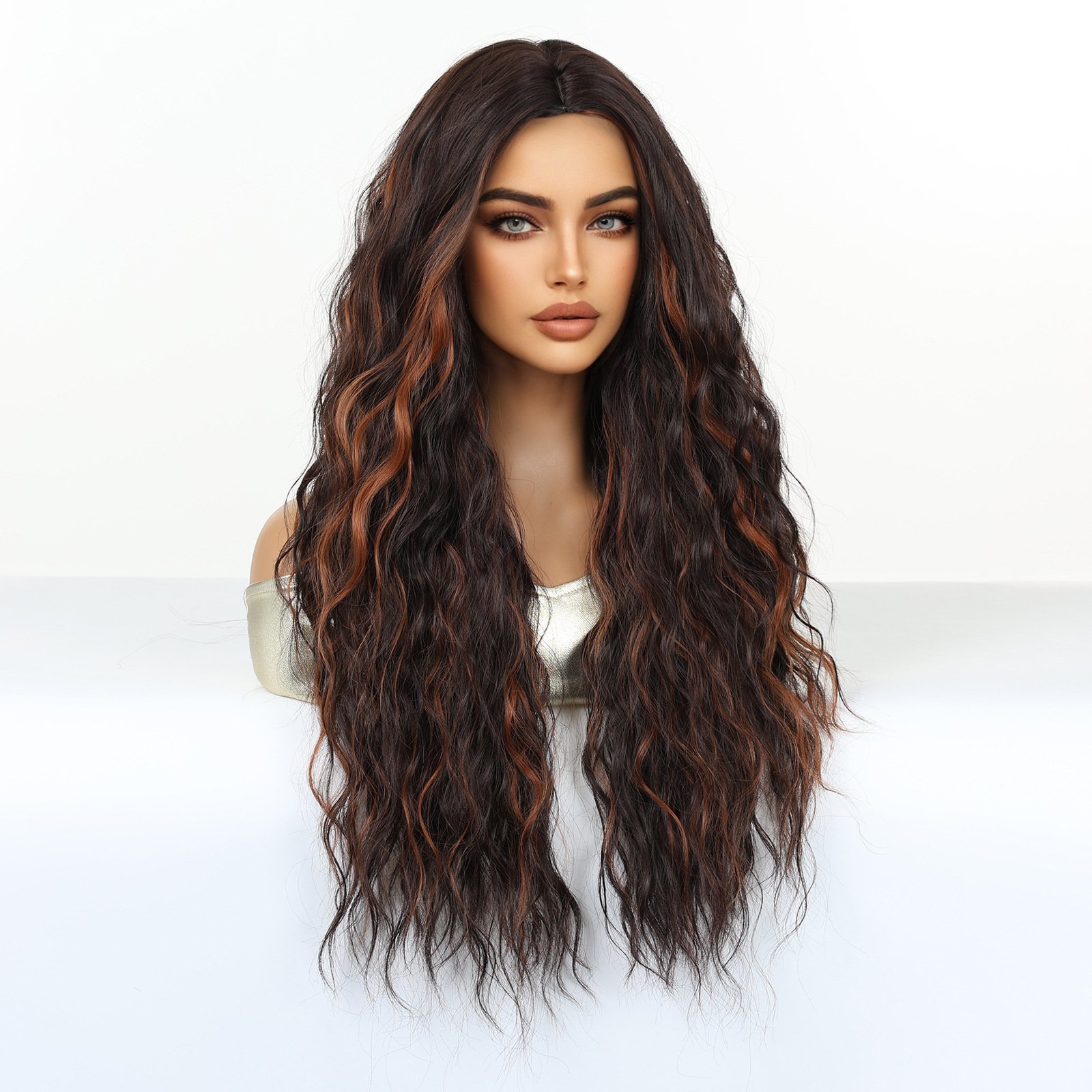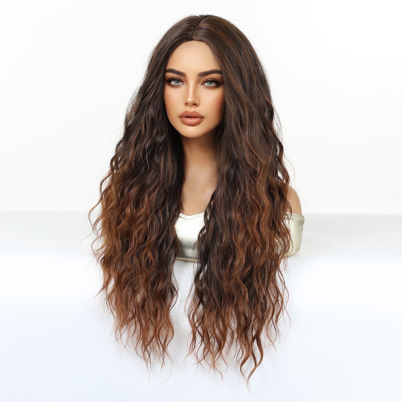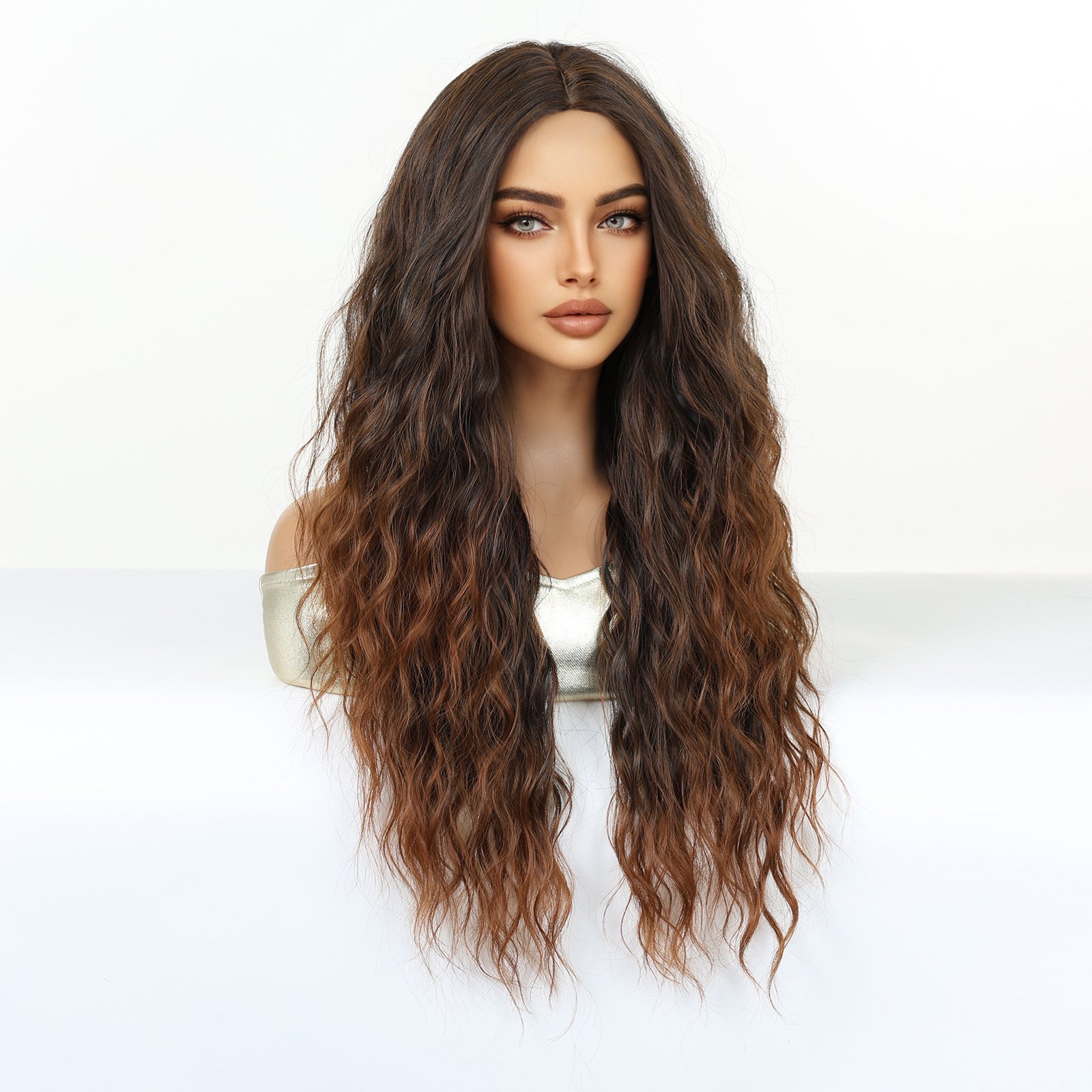 Shi Wig Golden Brown Spotted Gradient Long Curly Hair Fluffy Pear Flower Rose Net Long Curly Hair