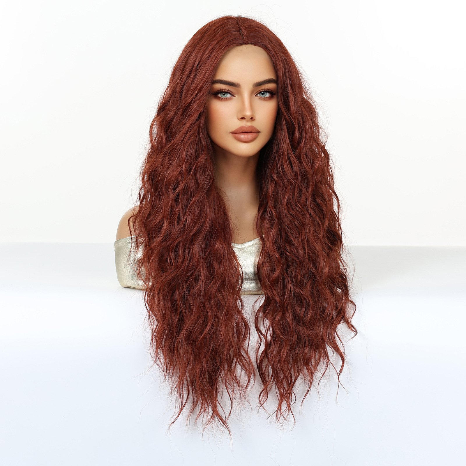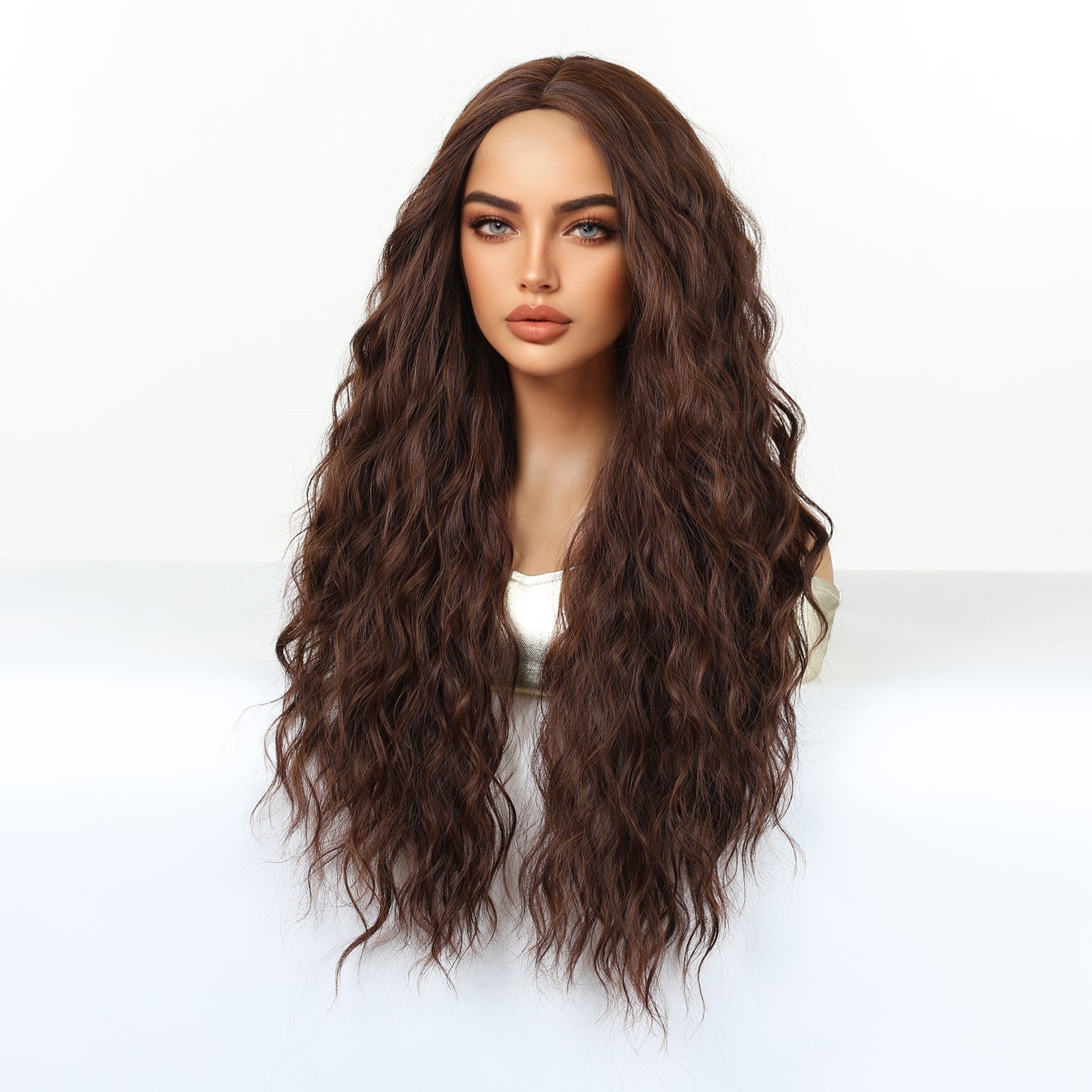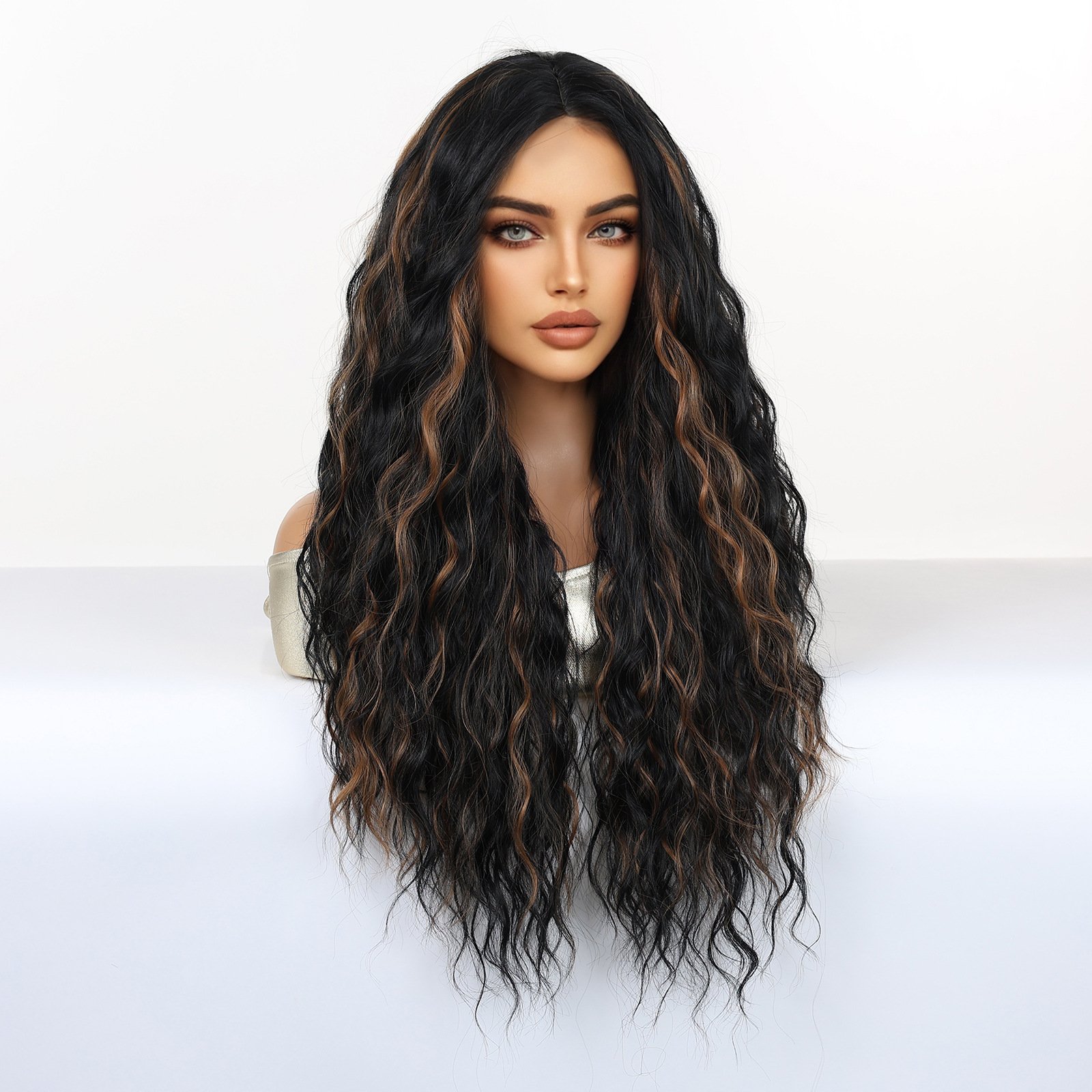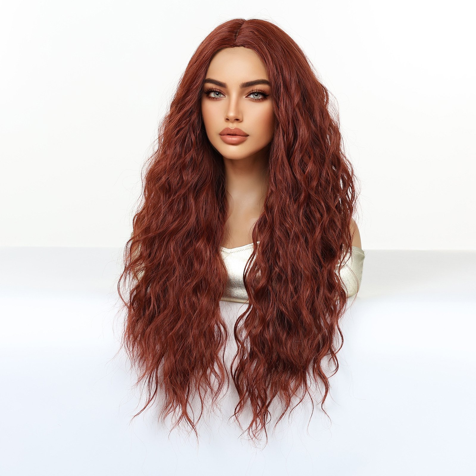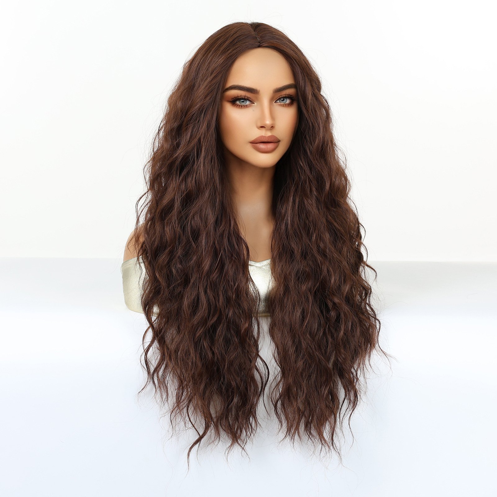 Shi Wig Golden Brown Spotted Gradient Long Curly Hair Fluffy Pear Flower Rose Net Long Curly Hair