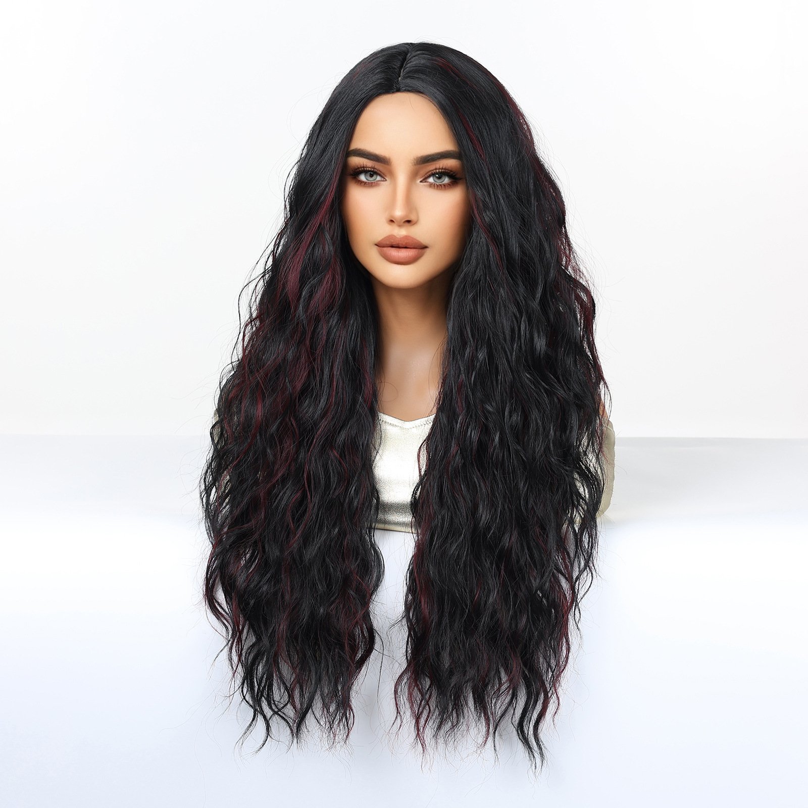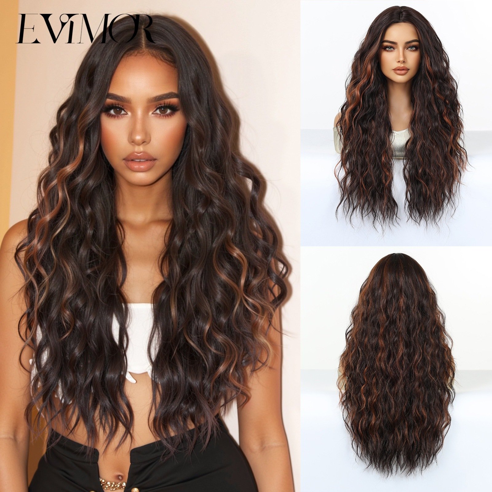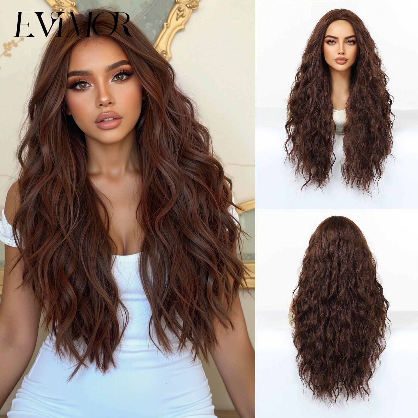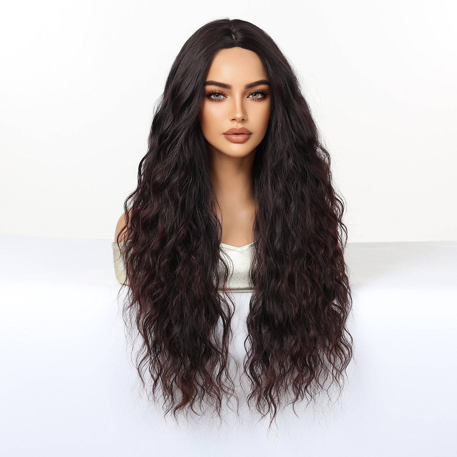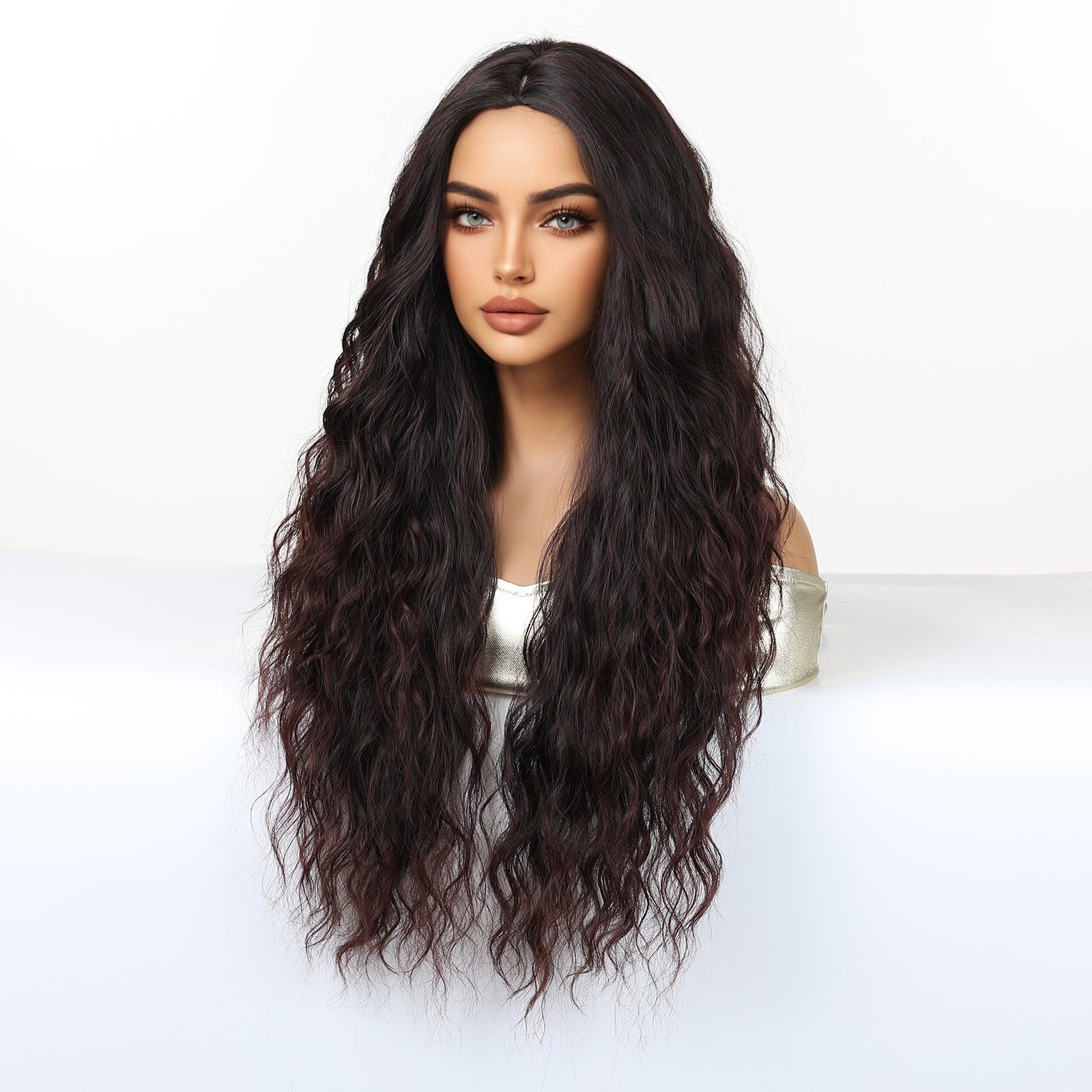 Shi Wig Golden Brown Spotted Gradient Long Curly Hair Fluffy Pear Flower Rose Net Long Curly Hair