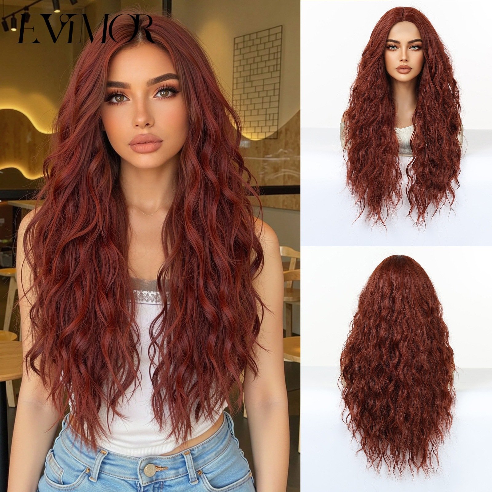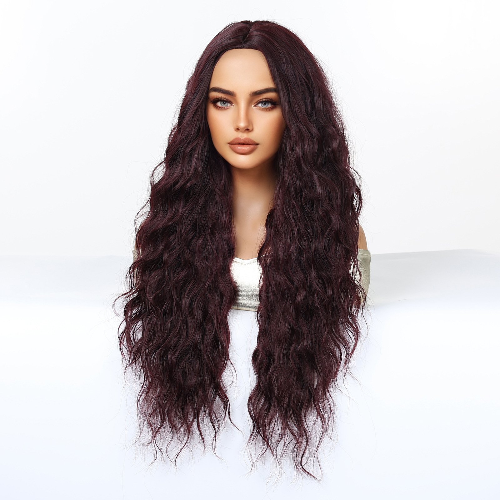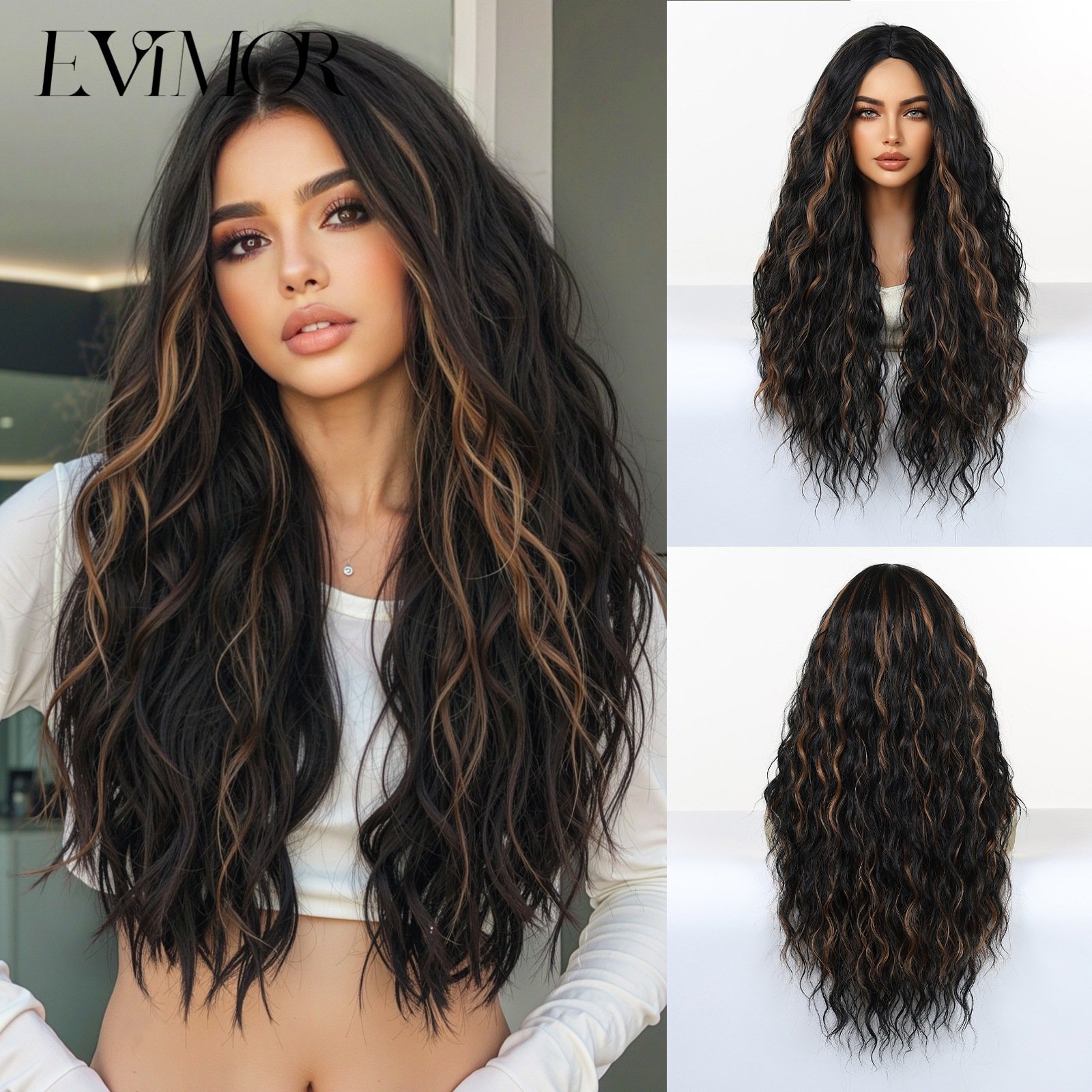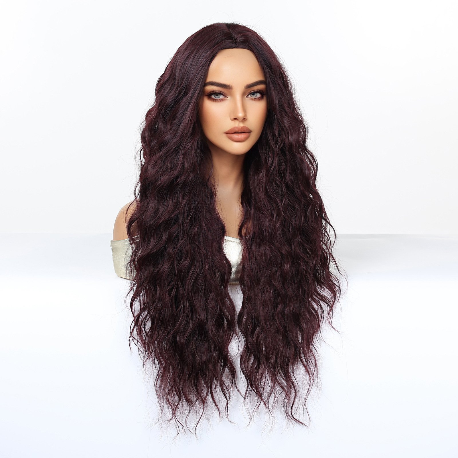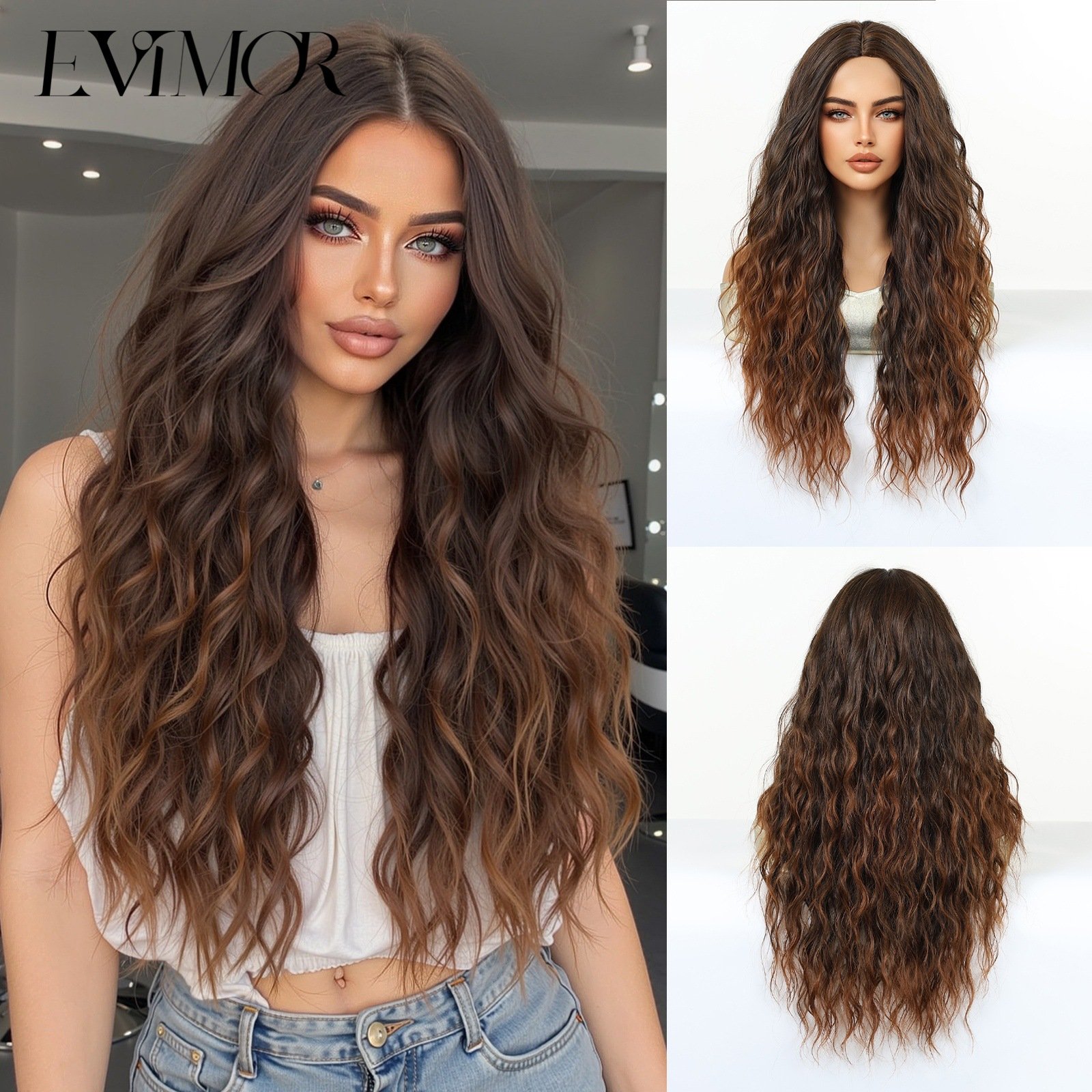 Shi Wig Golden Brown Spotted Gradient Long Curly Hair Fluffy Pear Flower Rose Net Long Curly Hair