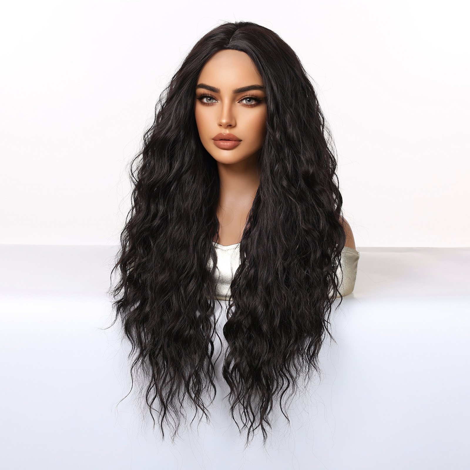 African Latin American Curled Wig 28 inch Fluffy Long Curled Hair Simulation Natural European and American Fashion Wig Women’s Full Headset