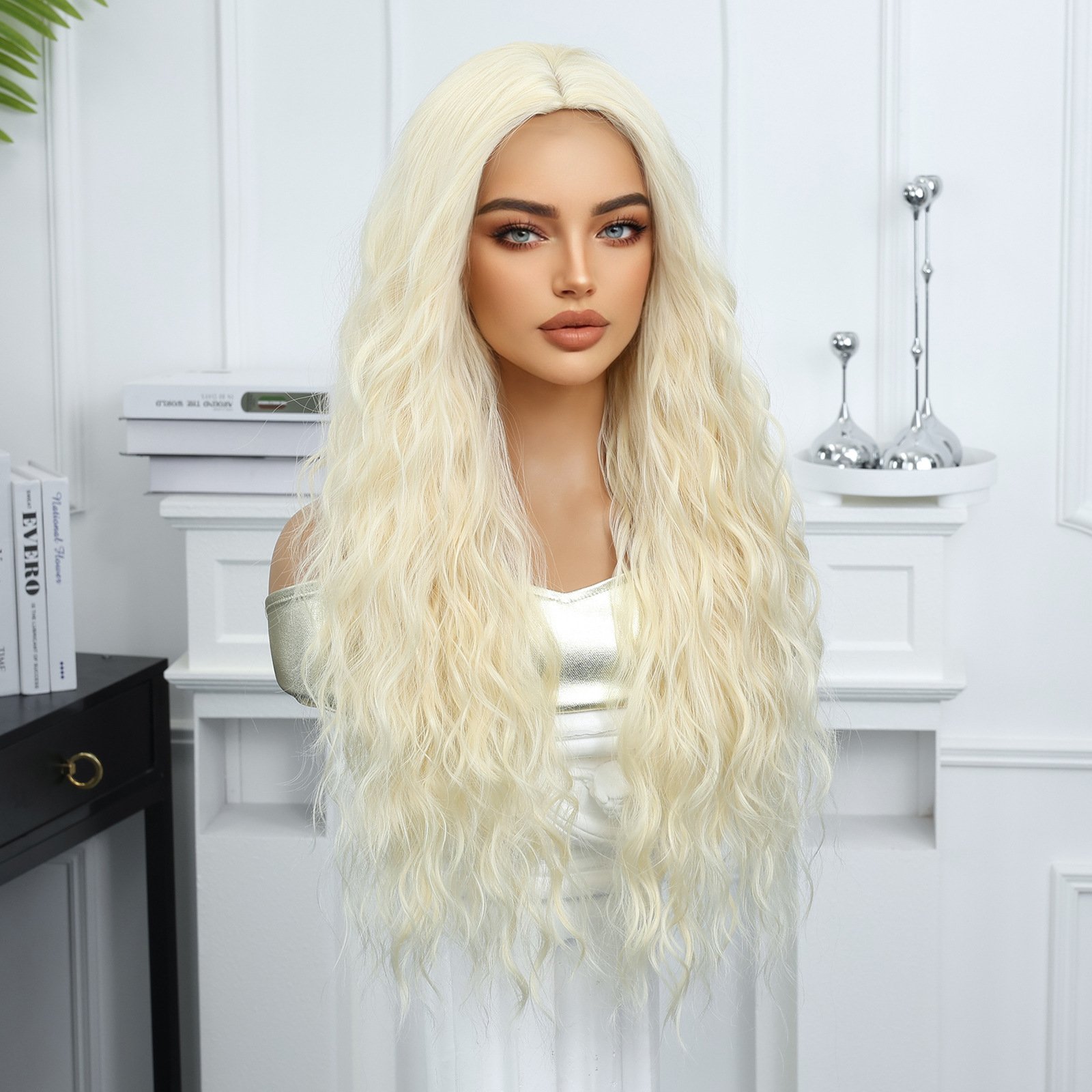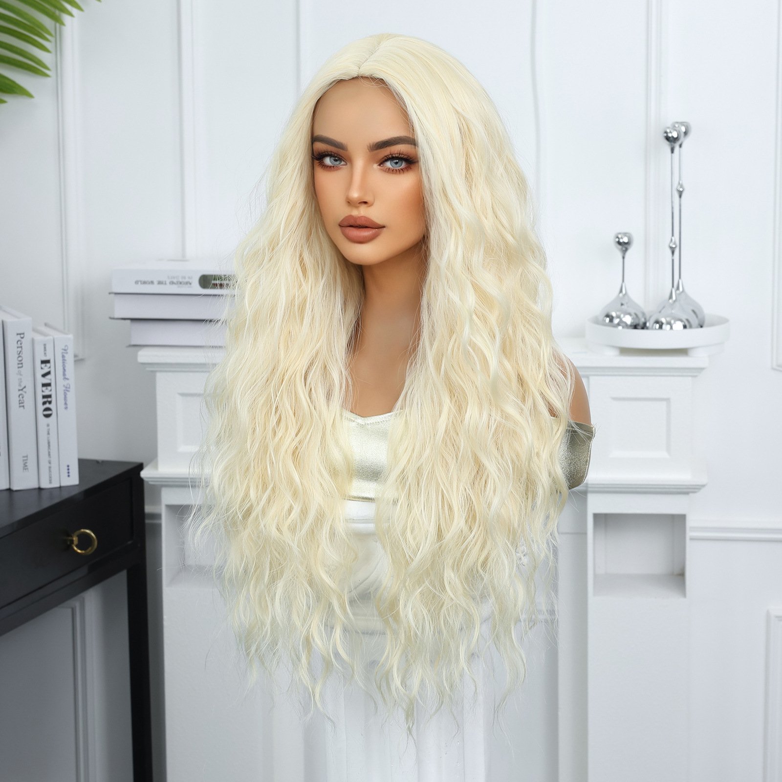 Gradient Gold Wig Female Full Headset Medium Long Hair Wig Halloween Cosplay Style Synthetic Hair