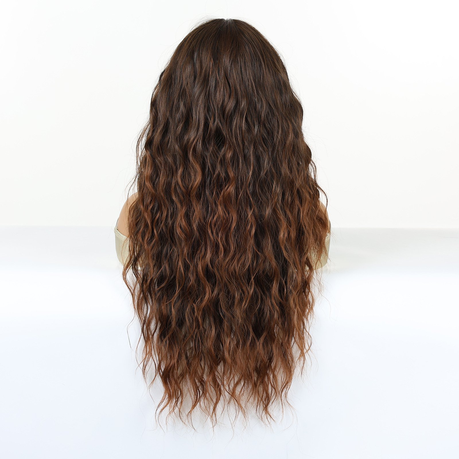 Lace full hand hooked wig gradient brown shoulder length curly hair