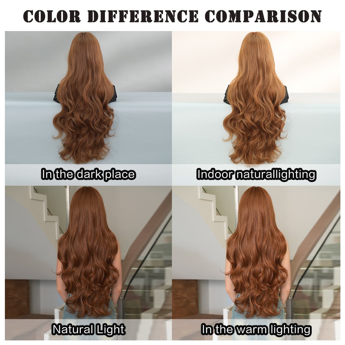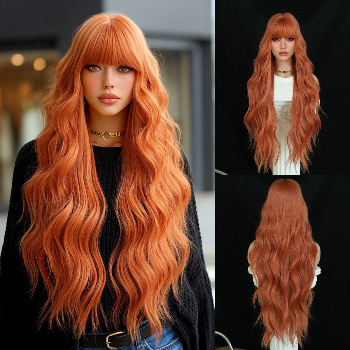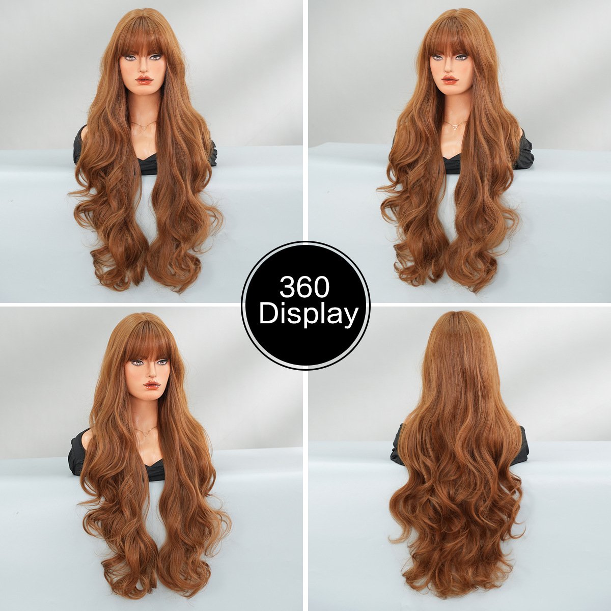 Apricot Brown Lori Wig Women’s 32in Super Long Curly Hair Natural Full Head Cover Large Wave Bang Simulation Wig