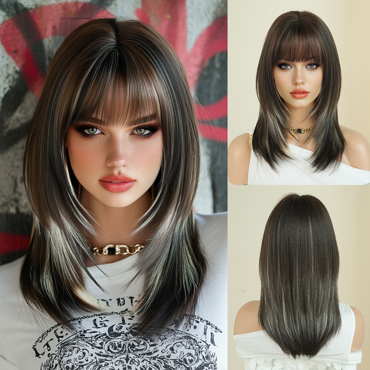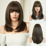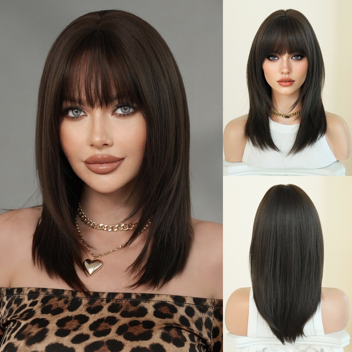 Chic Brown Bob Wig with Straight Fringe – Heat-Resistant Synthetic Fiber