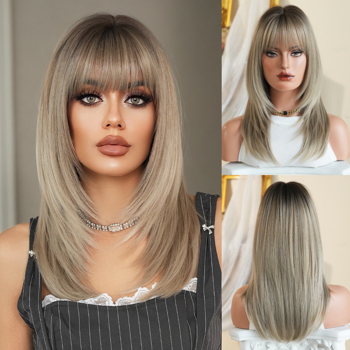 Graceful Gradient Ash Brown Long Wavy Wig – Heat-Resistant Synthetic Fiber