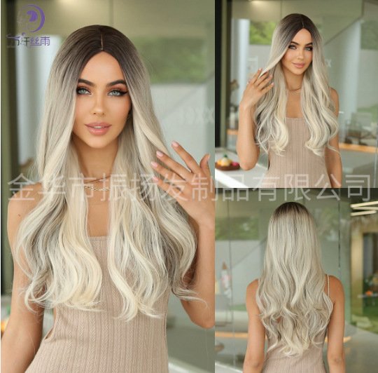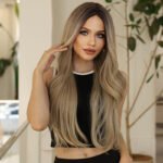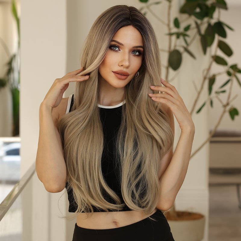 Graceful Gradient Ash Brown Long Wavy Wig – Heat-Resistant Synthetic Fiber