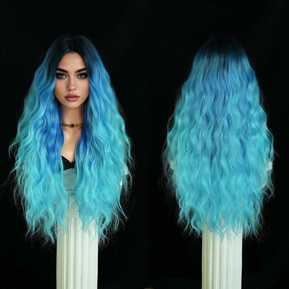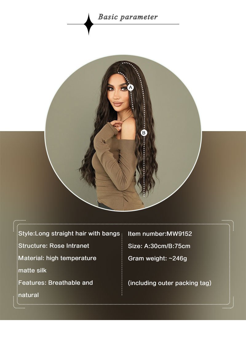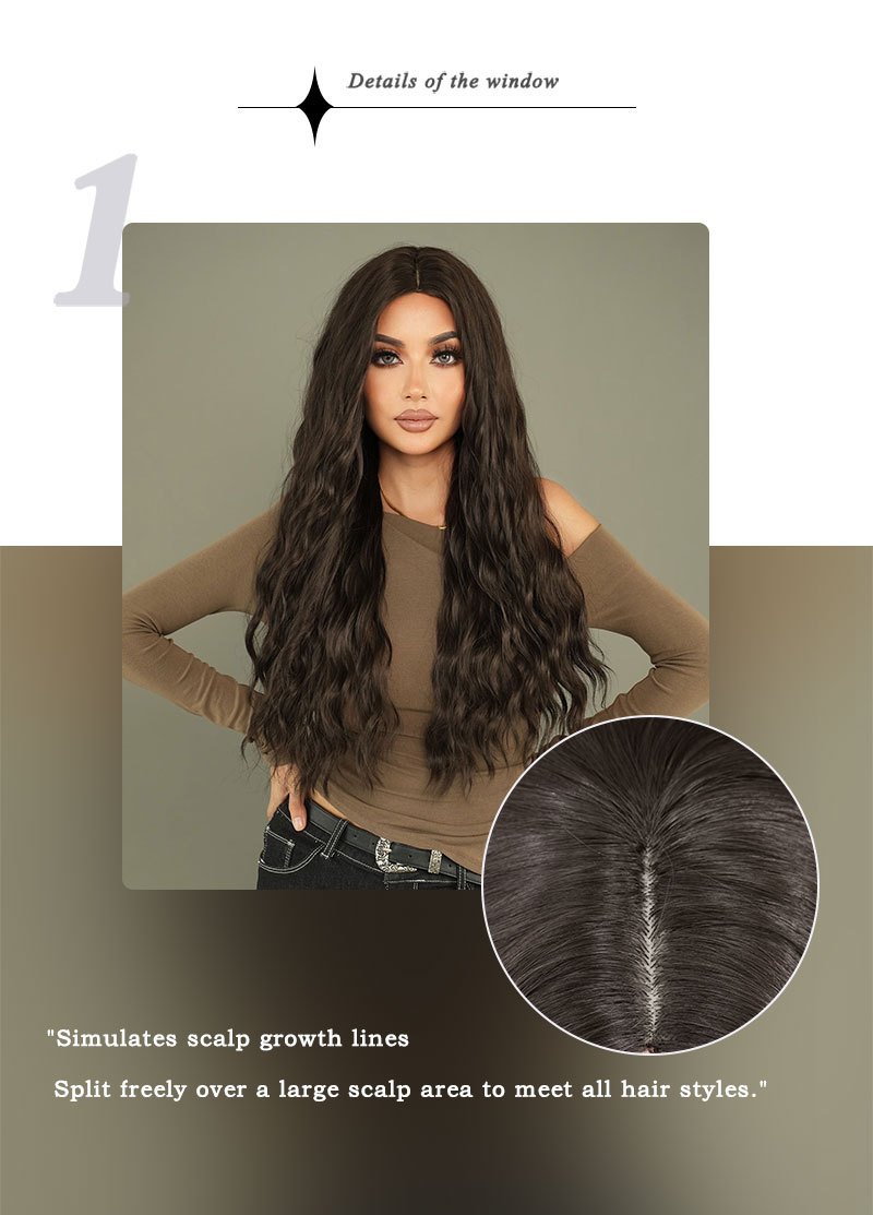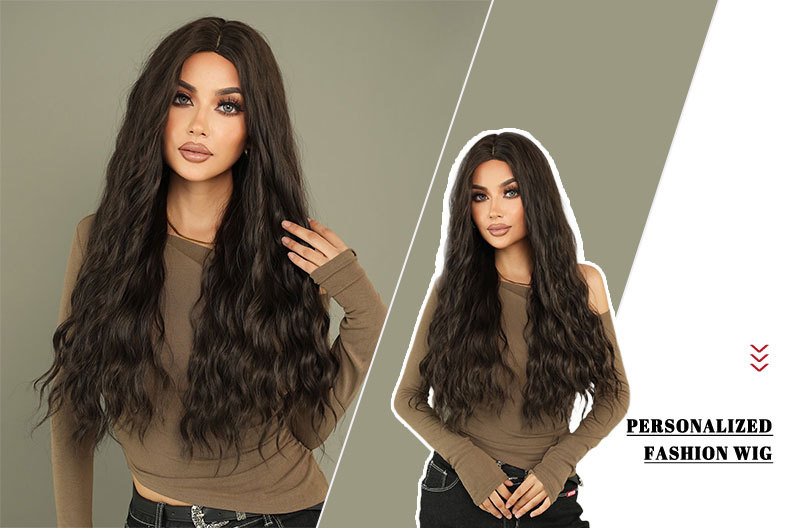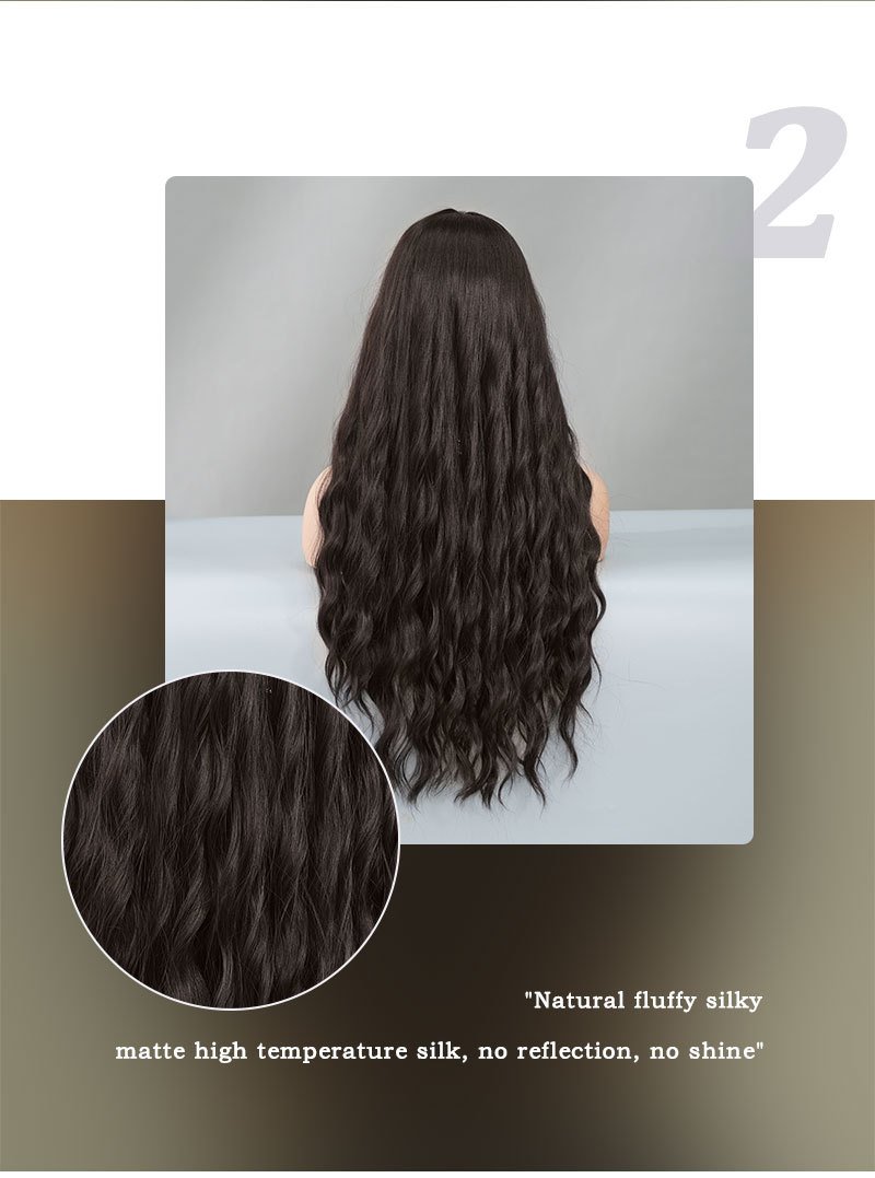 Black long hair body wavy long curly hair split natural chemical fiber full head cover Black Wigs