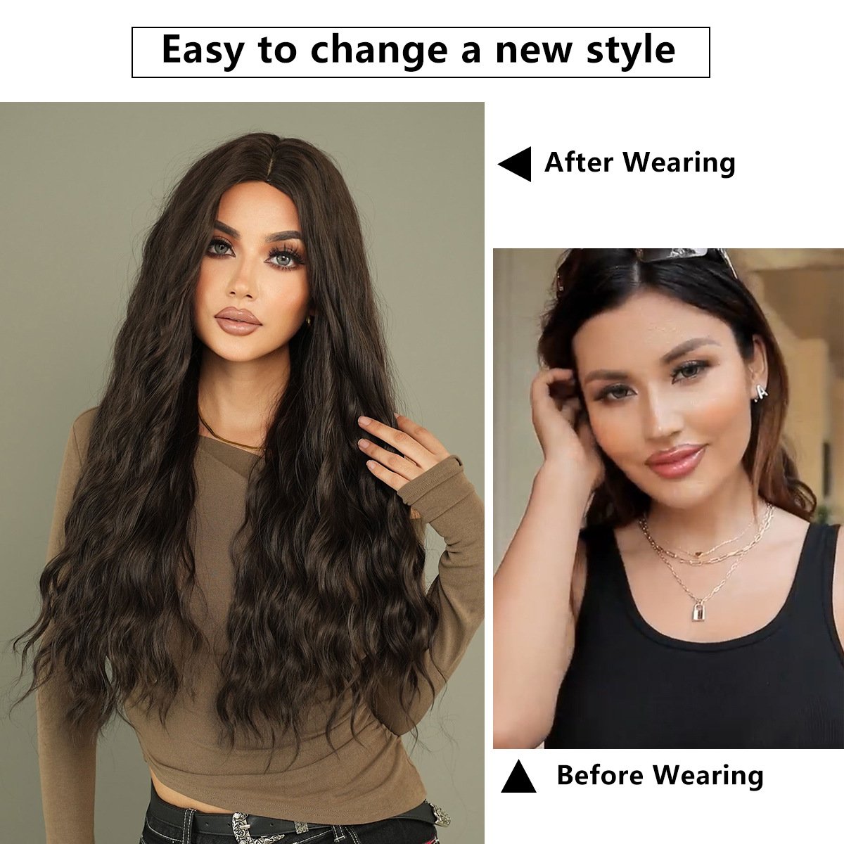 Model: Long Black Wigs for Women Wavy Synthetic Wig