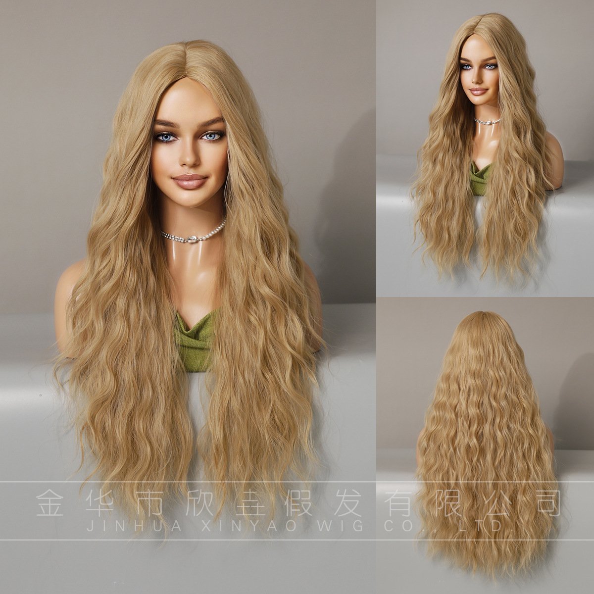 Gradient Gold Wig Female Full Headset Medium Long Hair Wig Halloween Cosplay Style Synthetic Hair