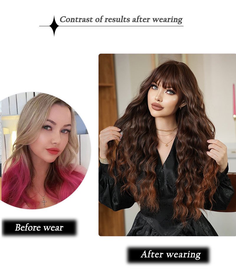 Brown gold water wave curly hair long hair wave wig women’s full head cover high temperature silk chemical fiber full head cover