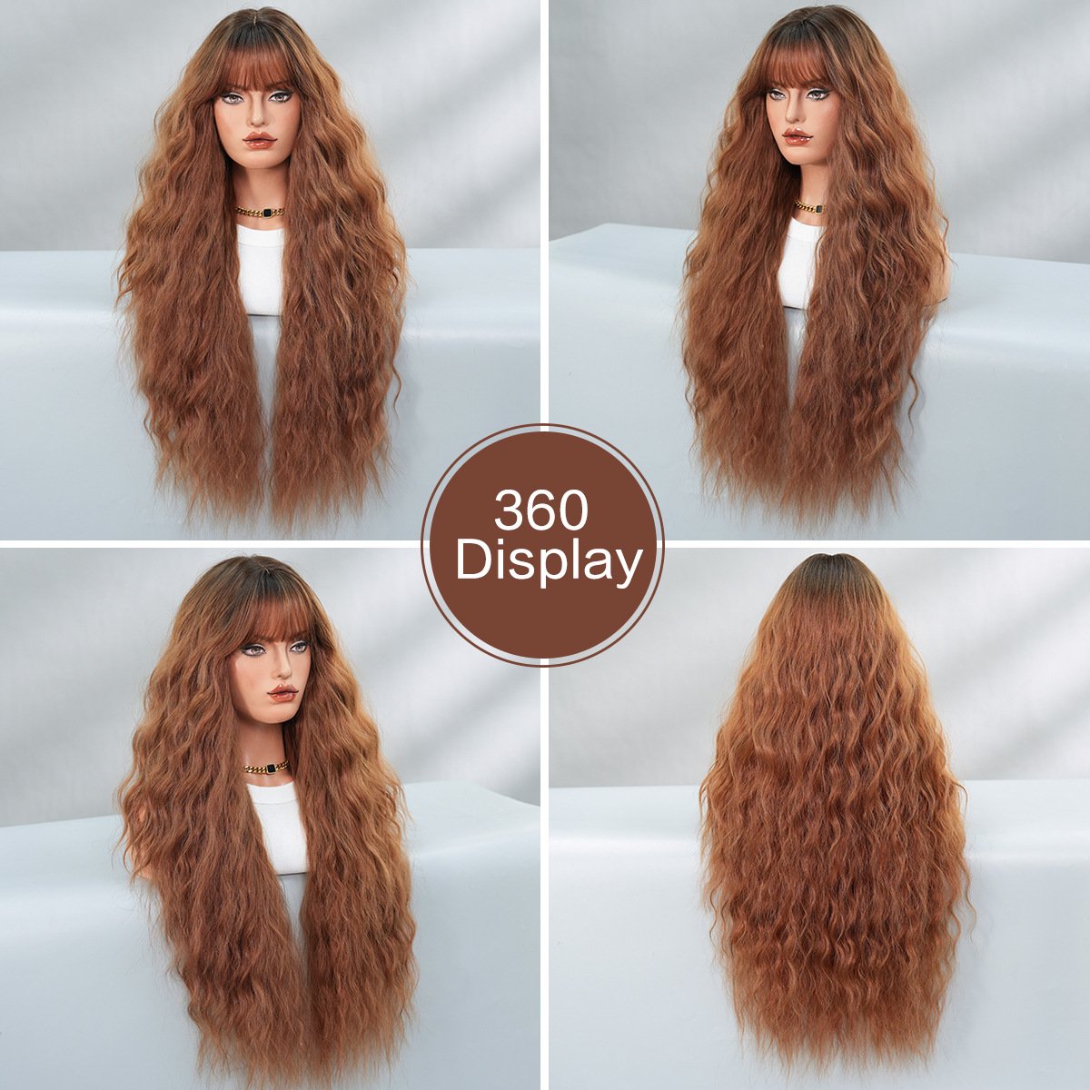 Model: Extra Long Curly Ombre Brown Hair Wigs with Bangs