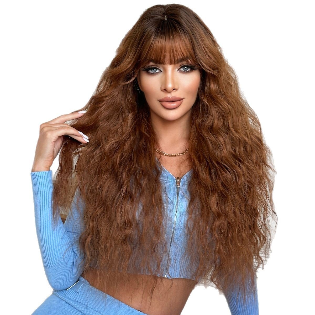 Brown Red Extra Long Wig Full Head Cover Big Wave Curly Daily Fluffy Rose Mesh High Quality Wig
