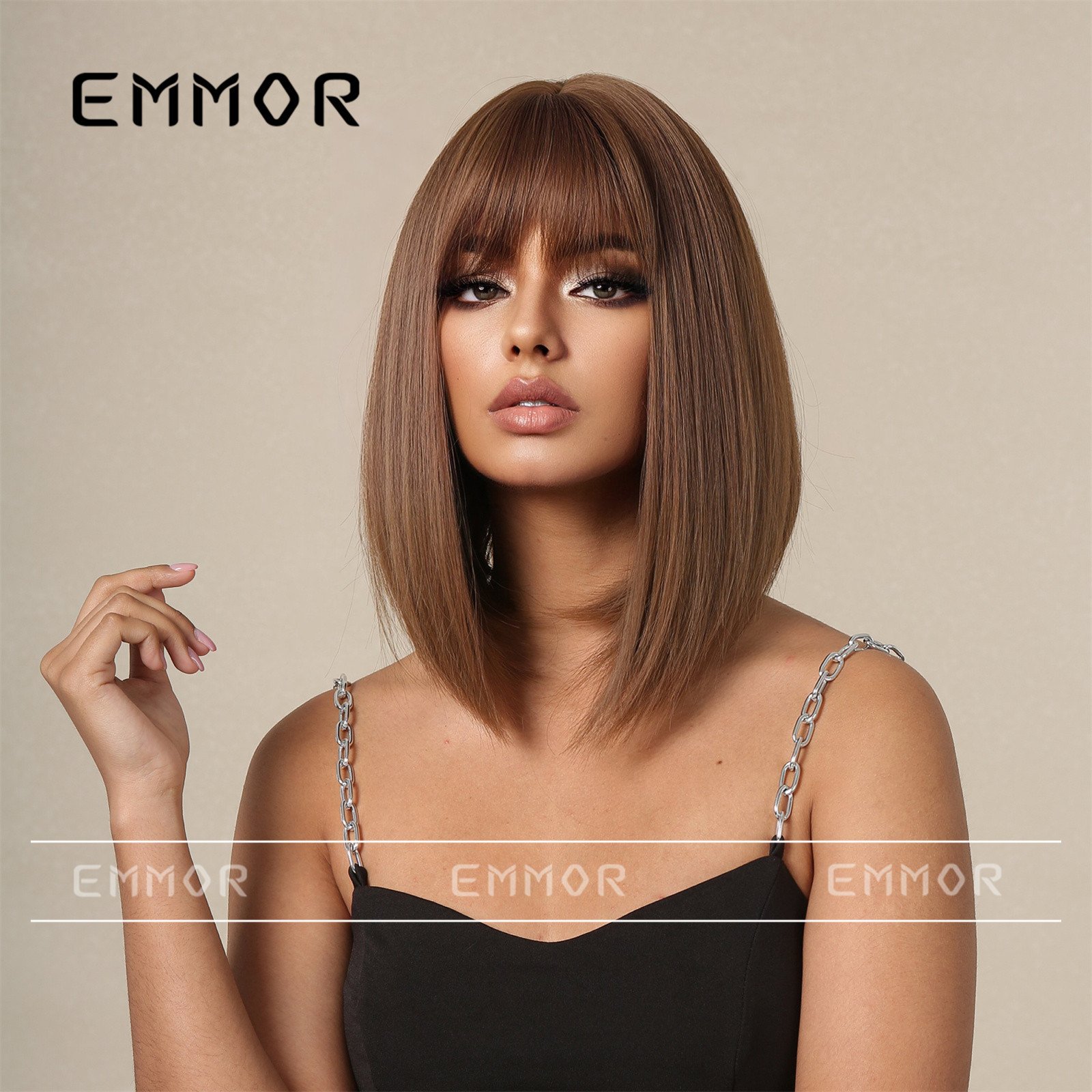 Men’s wig boys’ short straight hair fake head with brown bangs