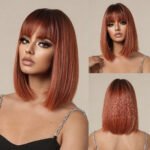 Classic Short Straight Bob Wig with Flat Bangs for a Chic Natural Look