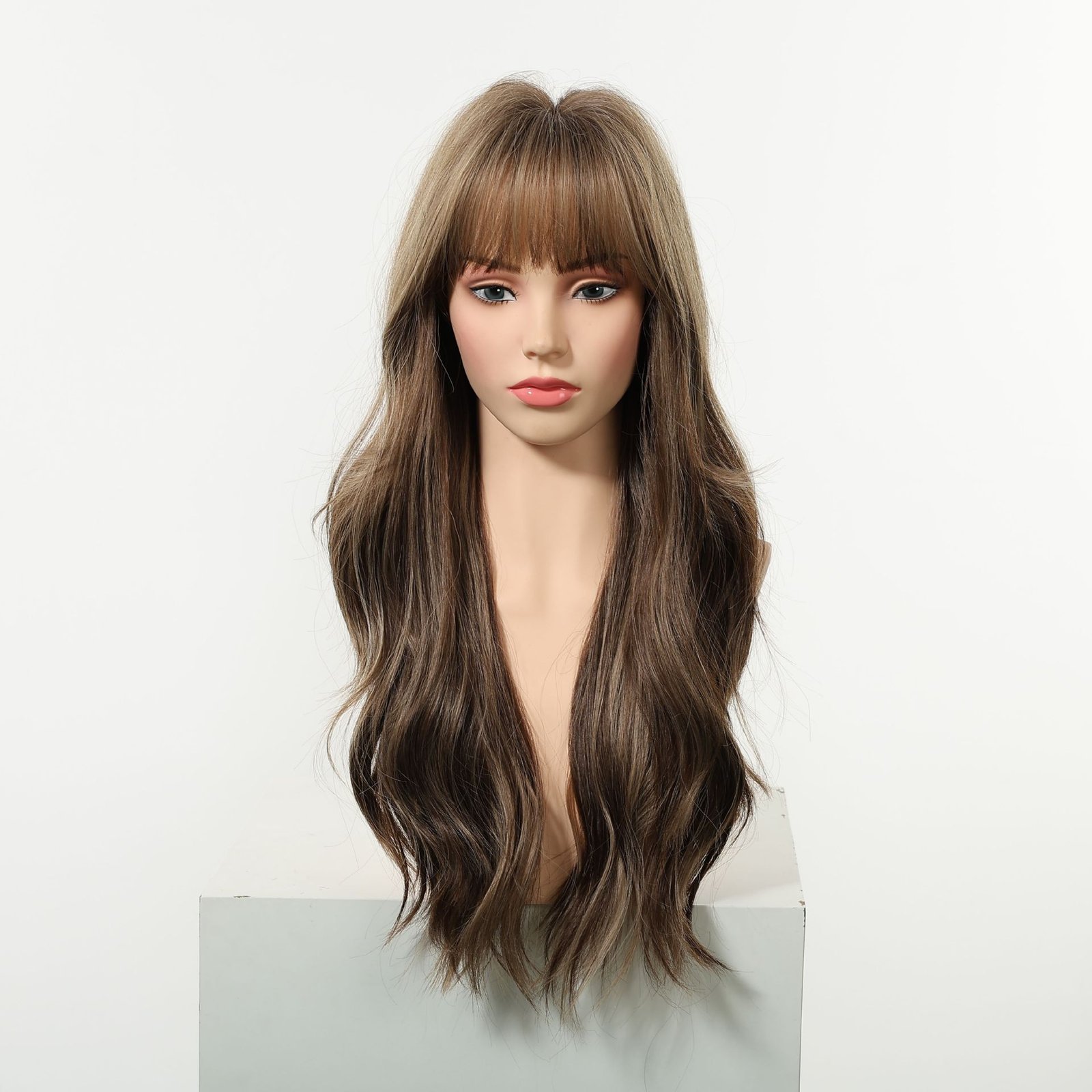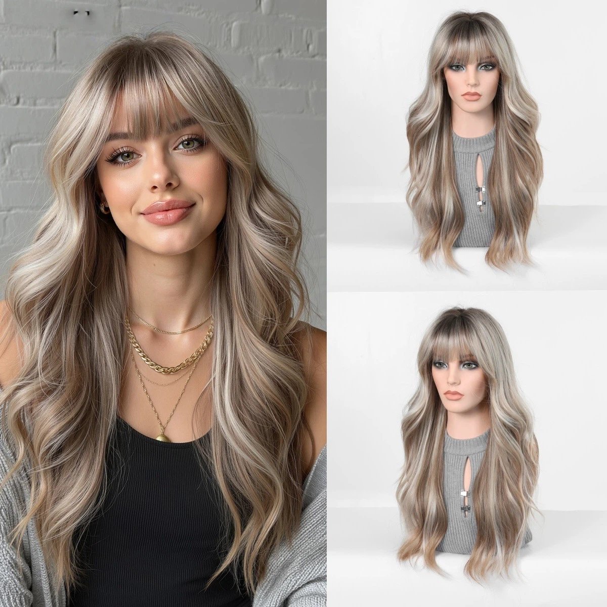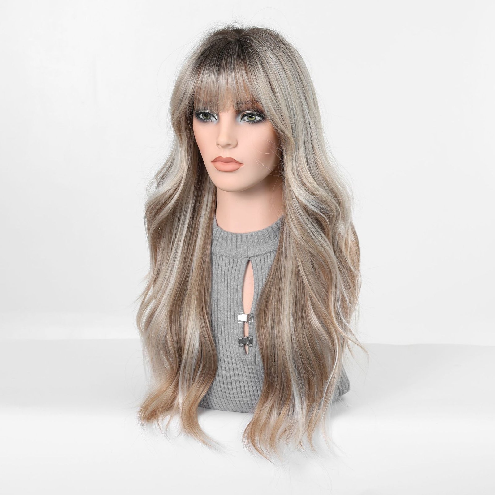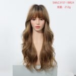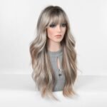 Be the first to review “Cross border European and American style gradient gray gold long curly hair wig, air bangs, big waves, natural and realistic synthetic full head cover”