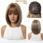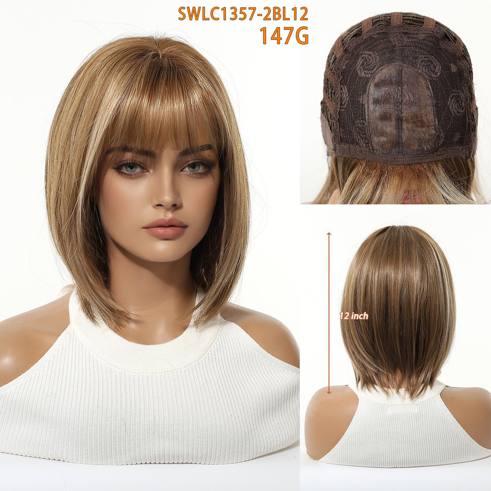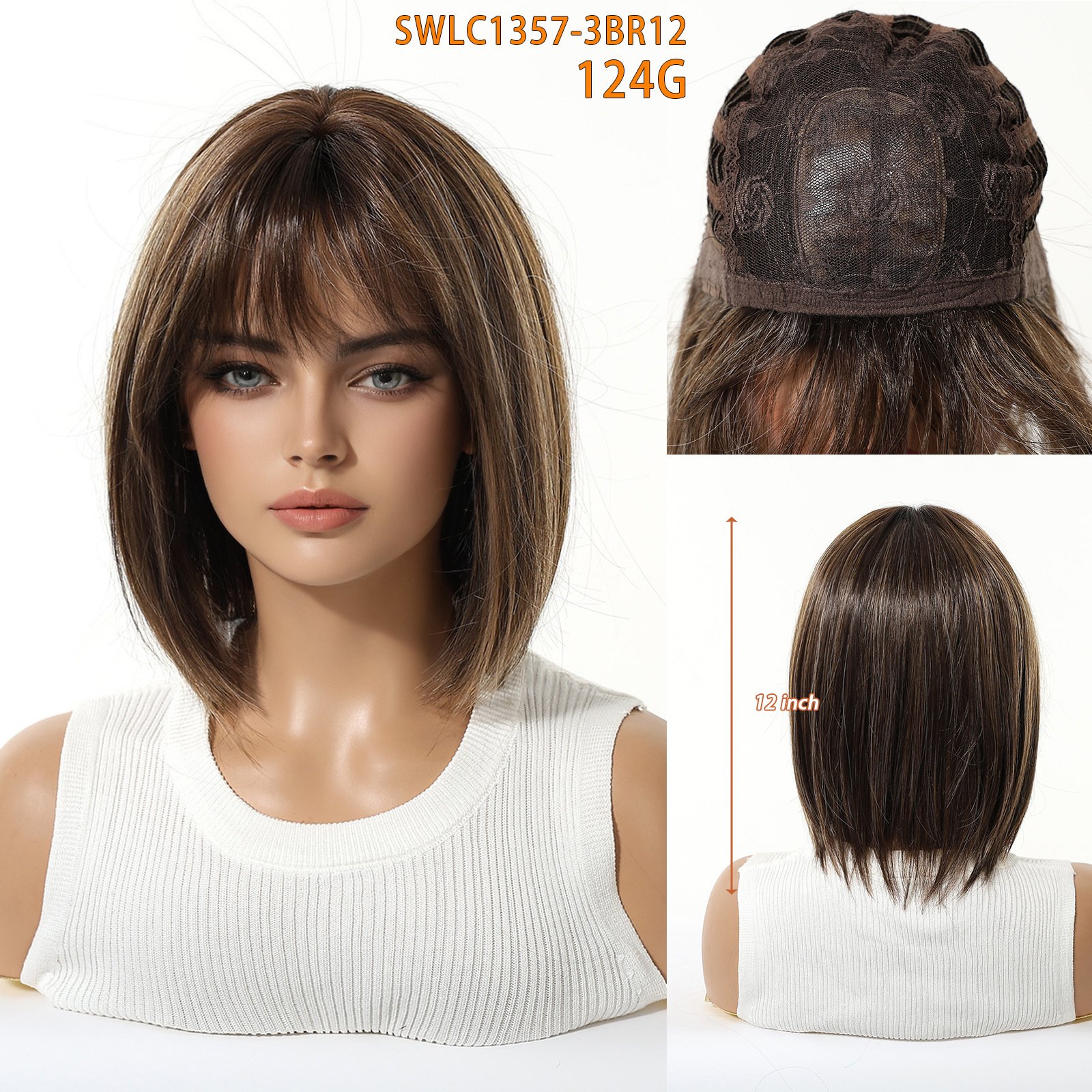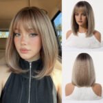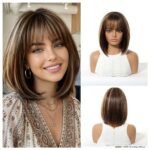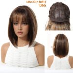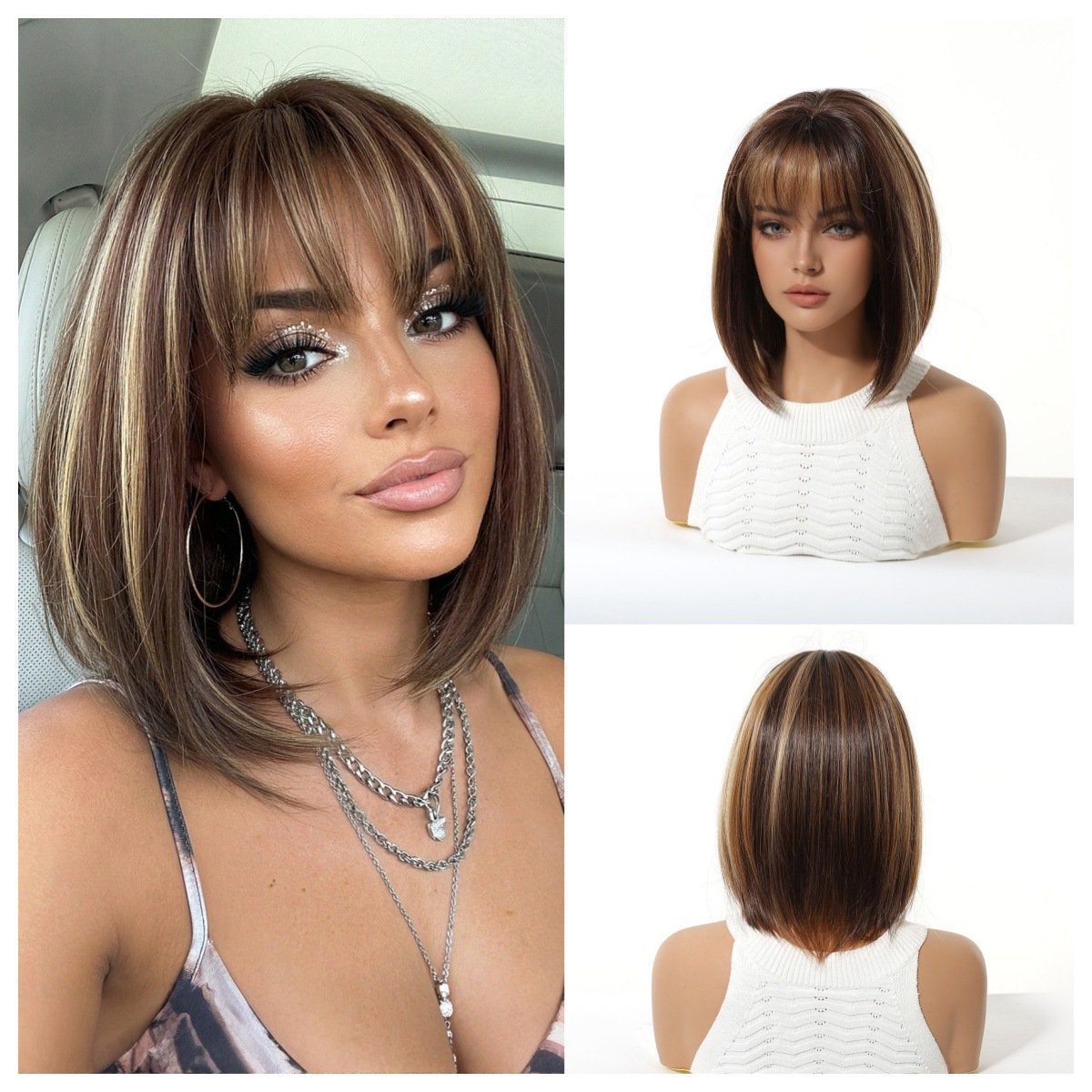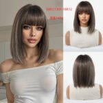 Be the first to review “Cross border gradient brown wig, dyed bob, air bangs, short straight hair, natural and realistic synthetic hair, full head”