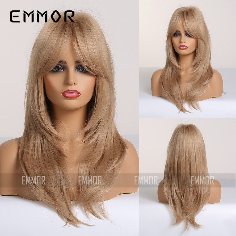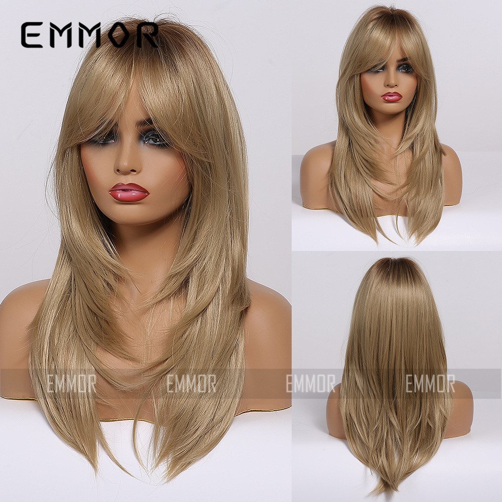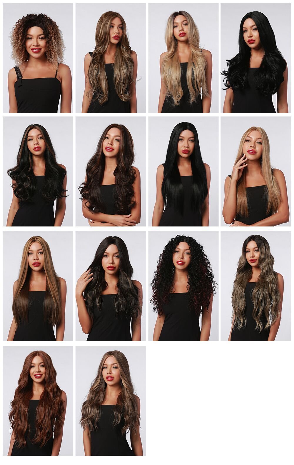 Cross border new products, multiple multi-color full head covers, gradient gold black brown, hot selling mid to long straight hair, tail curly wig