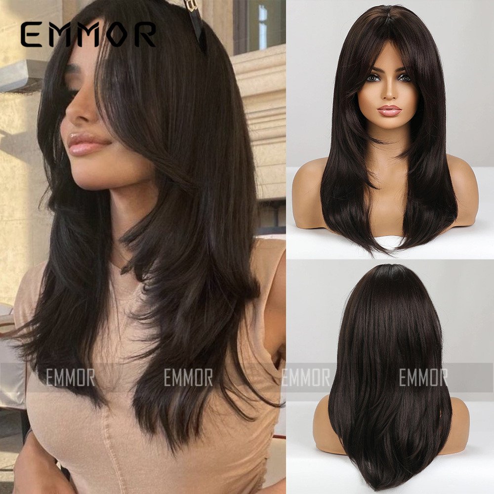 Wig Short Straight Fluffy Short Bangs Dark Brown Women’s Wig Short Curly Hair