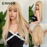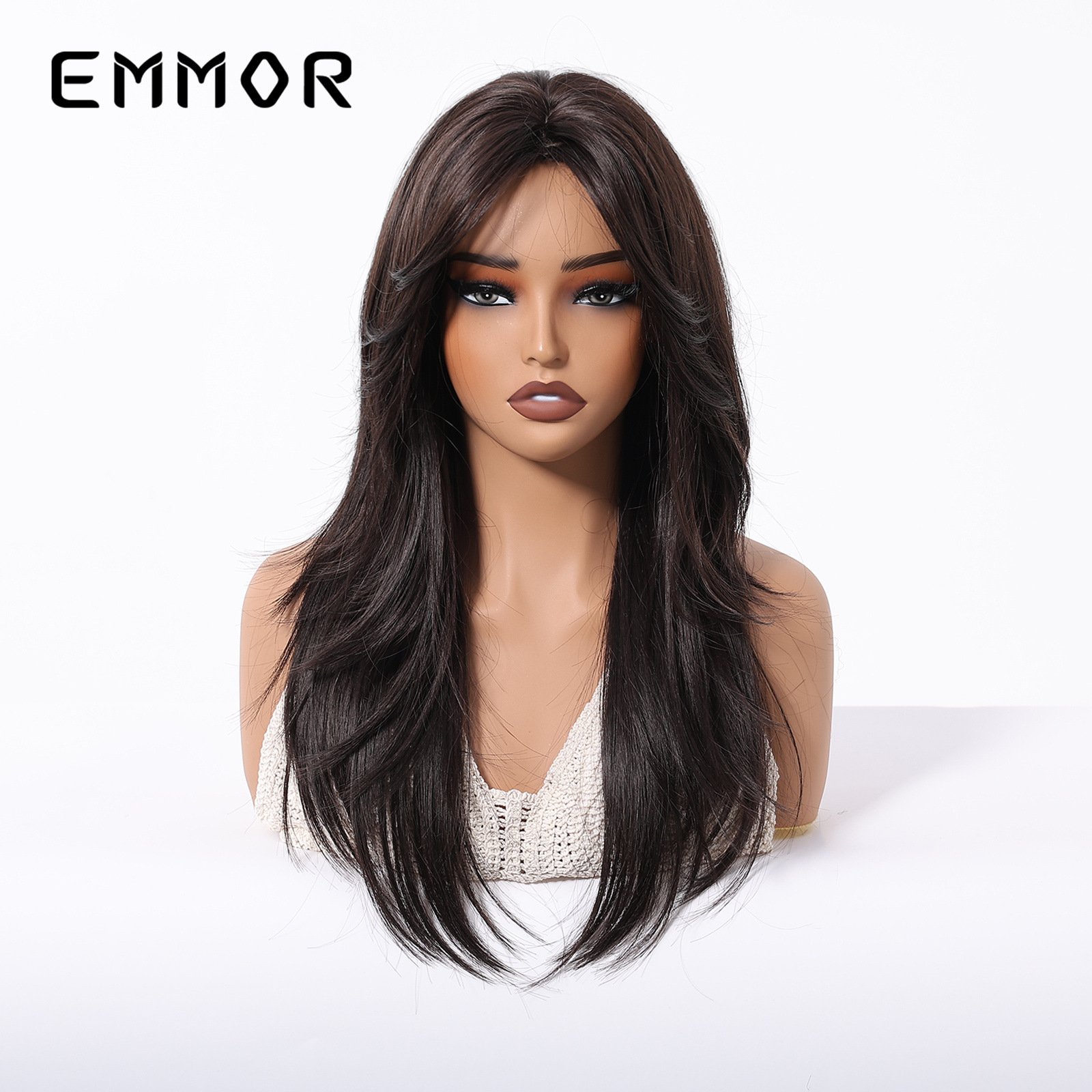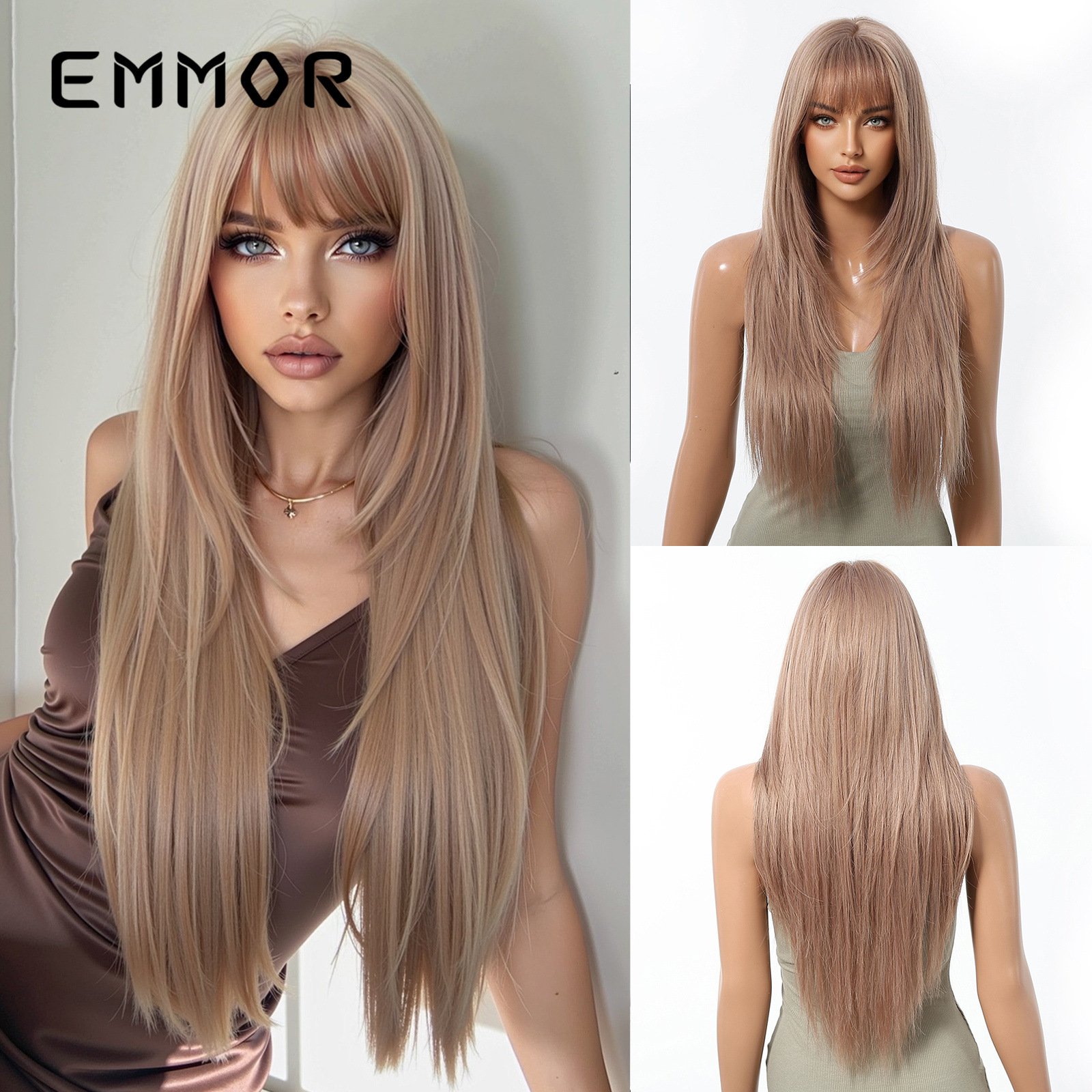 Gradient synthetic wig full head cover is hot selling with bangs and medium to long straight hair