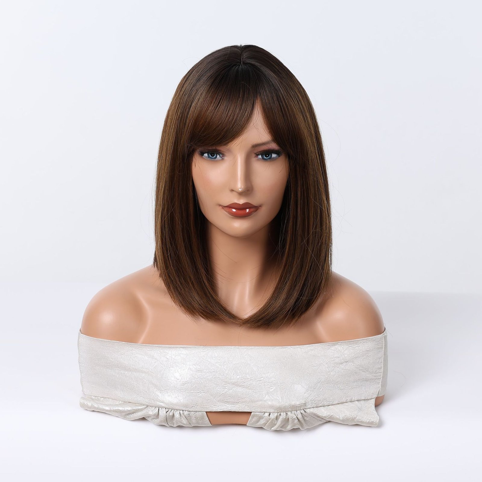 Chic Brown Bob Wig with Straight Fringe – Heat-Resistant Synthetic Fiber
