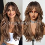 New Arrival Women's Qi Bangs Dark Brown Big Wave Fashion Long Curly Wig Full Hair Wigs