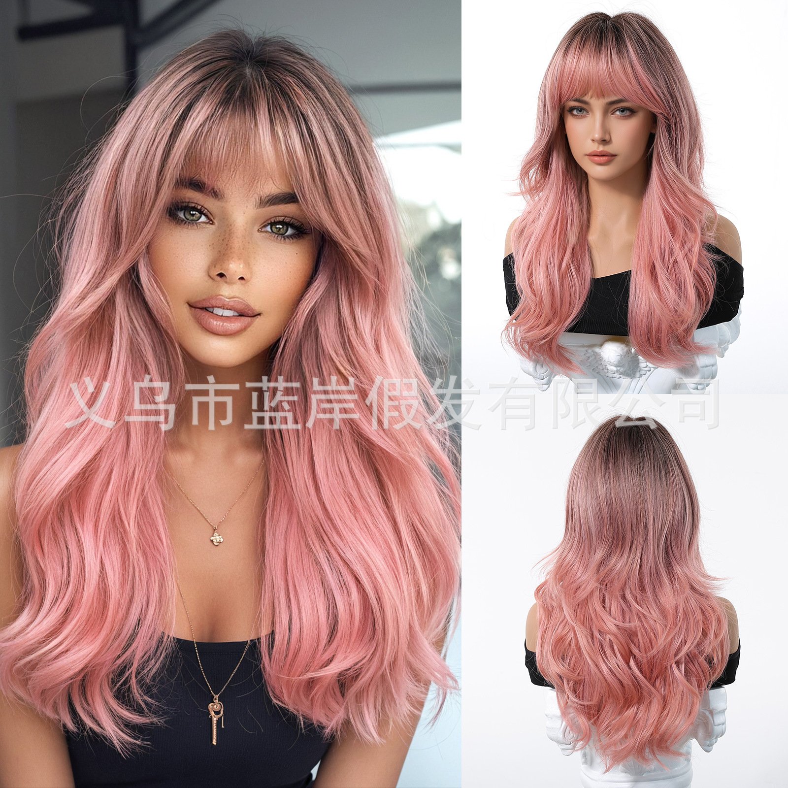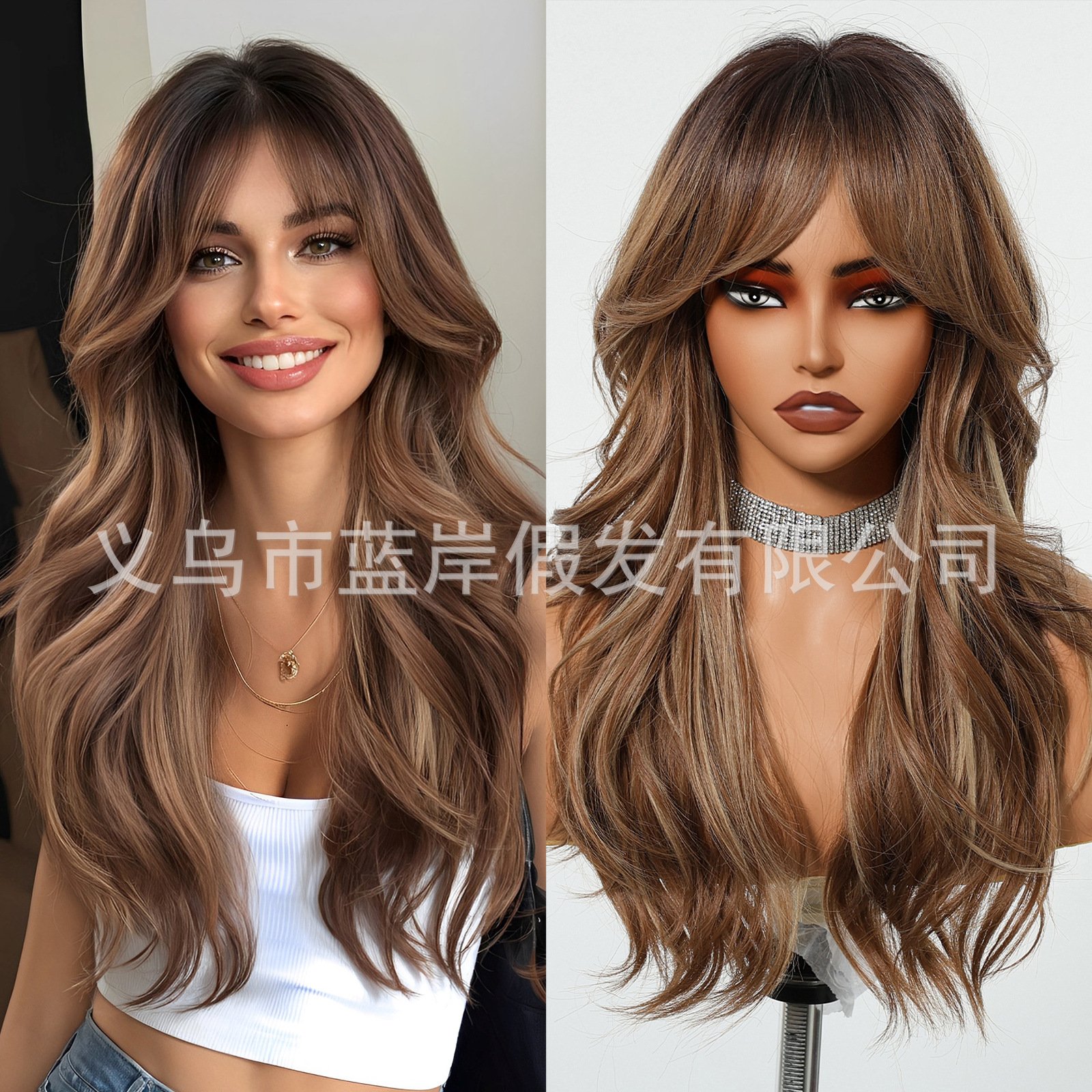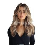 Be the first to review “Elegant Goddess Wig Women’s Eight-character Bangs Gradient Light Gold Mid-length Large Wave Roll Head Cover” Cancel reply
