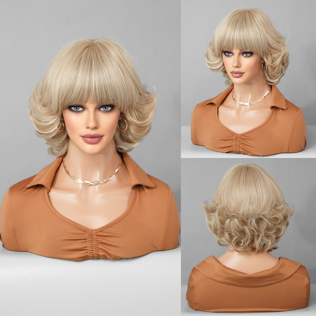 Wig Explosions Women’s Fashion Wish Slant Bangs Fluffy Color Pick Short Curls