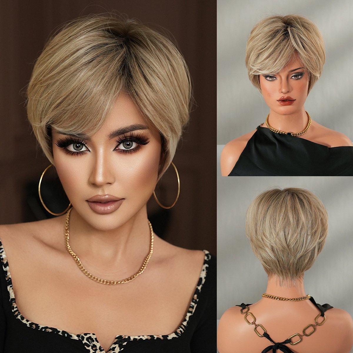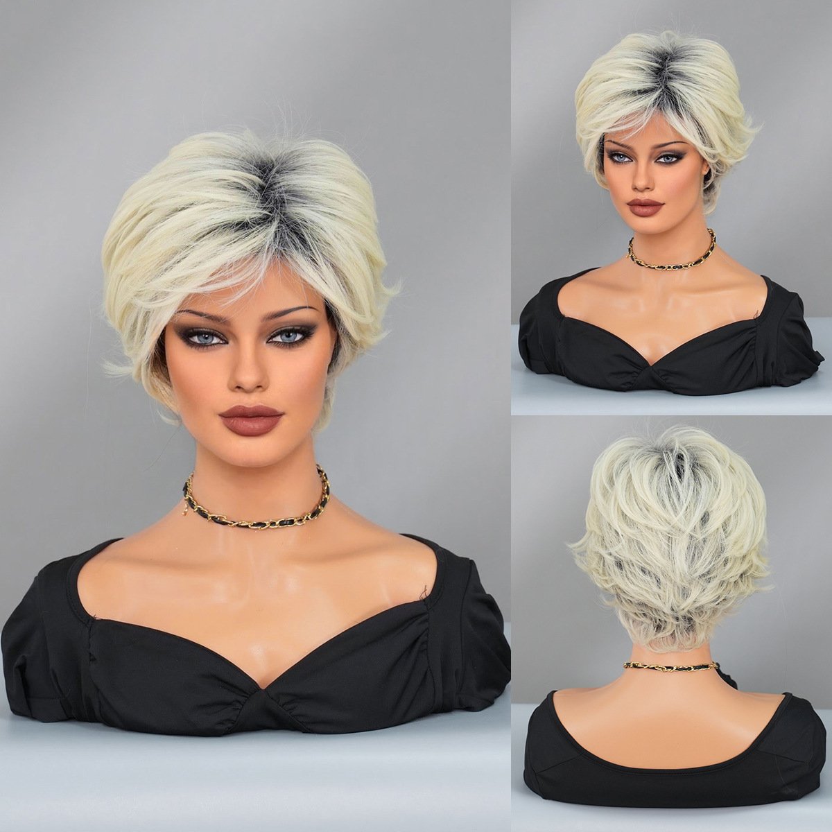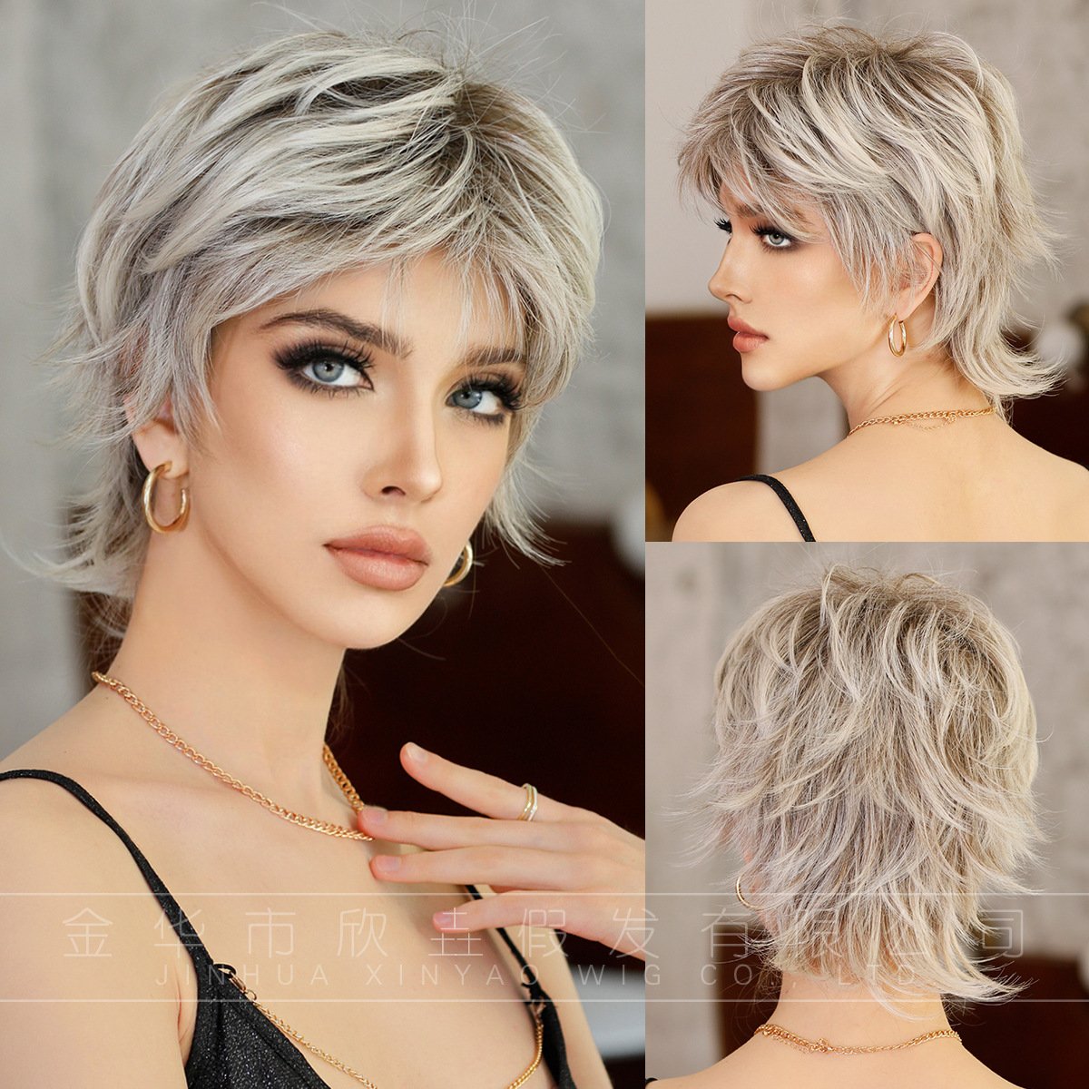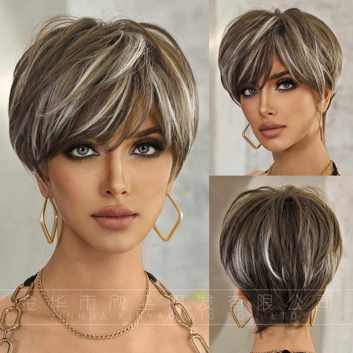 Elf Wig Mom Middle-aged Women’s Hierarchical Short Mechanism Chemical Fiber Summer Wig