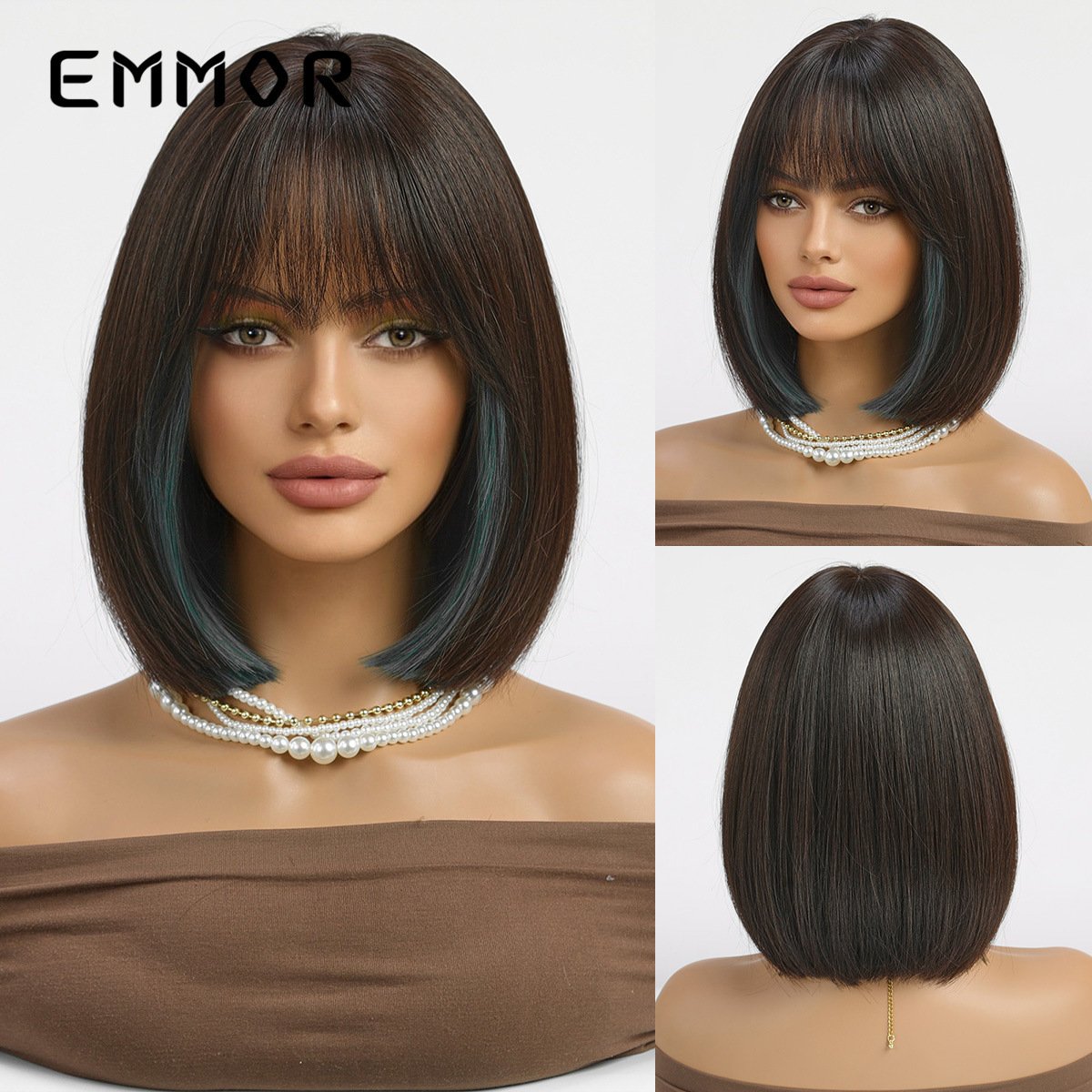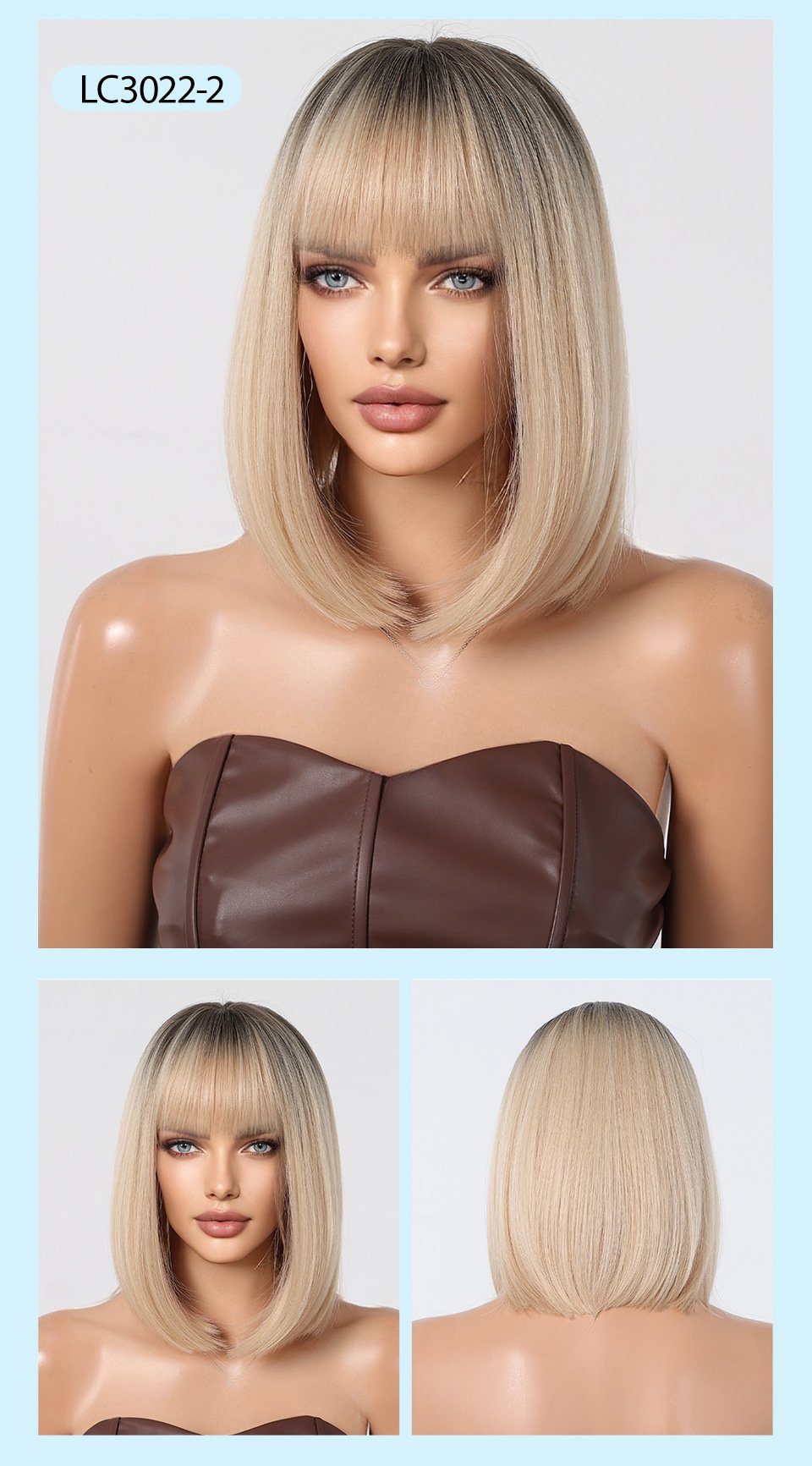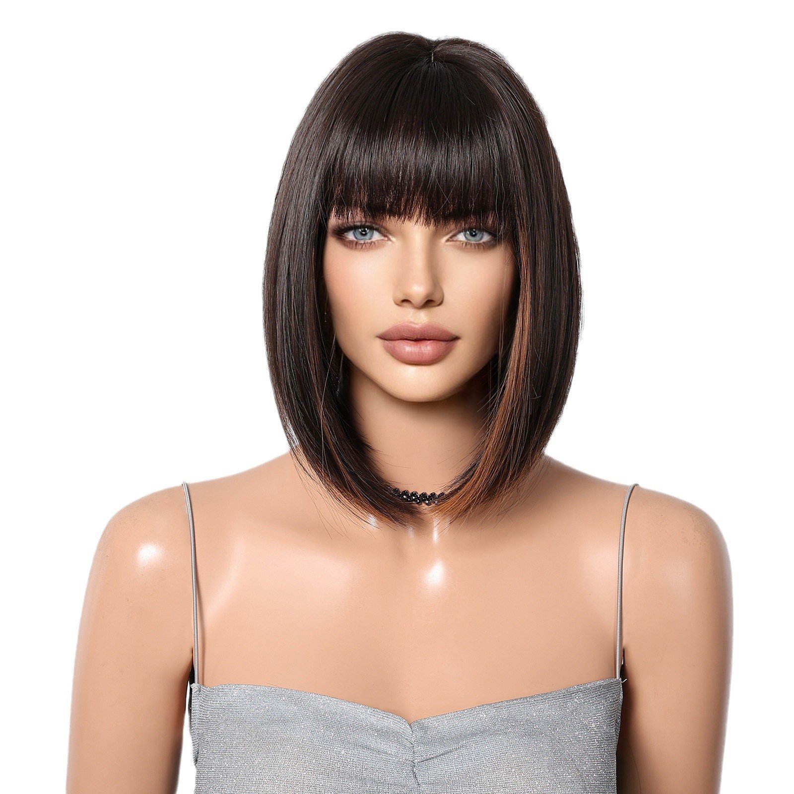 New Style Champagne Brown Short Straight Hair Fashionable Age-reducing bobo Head Natural No Mark Wig Full Head Cover