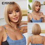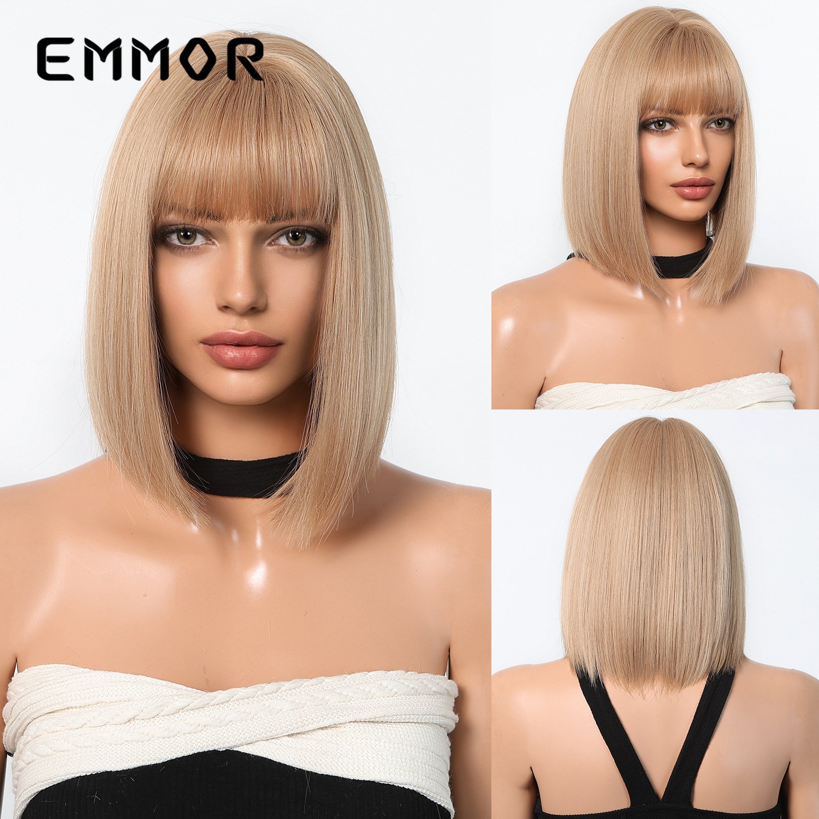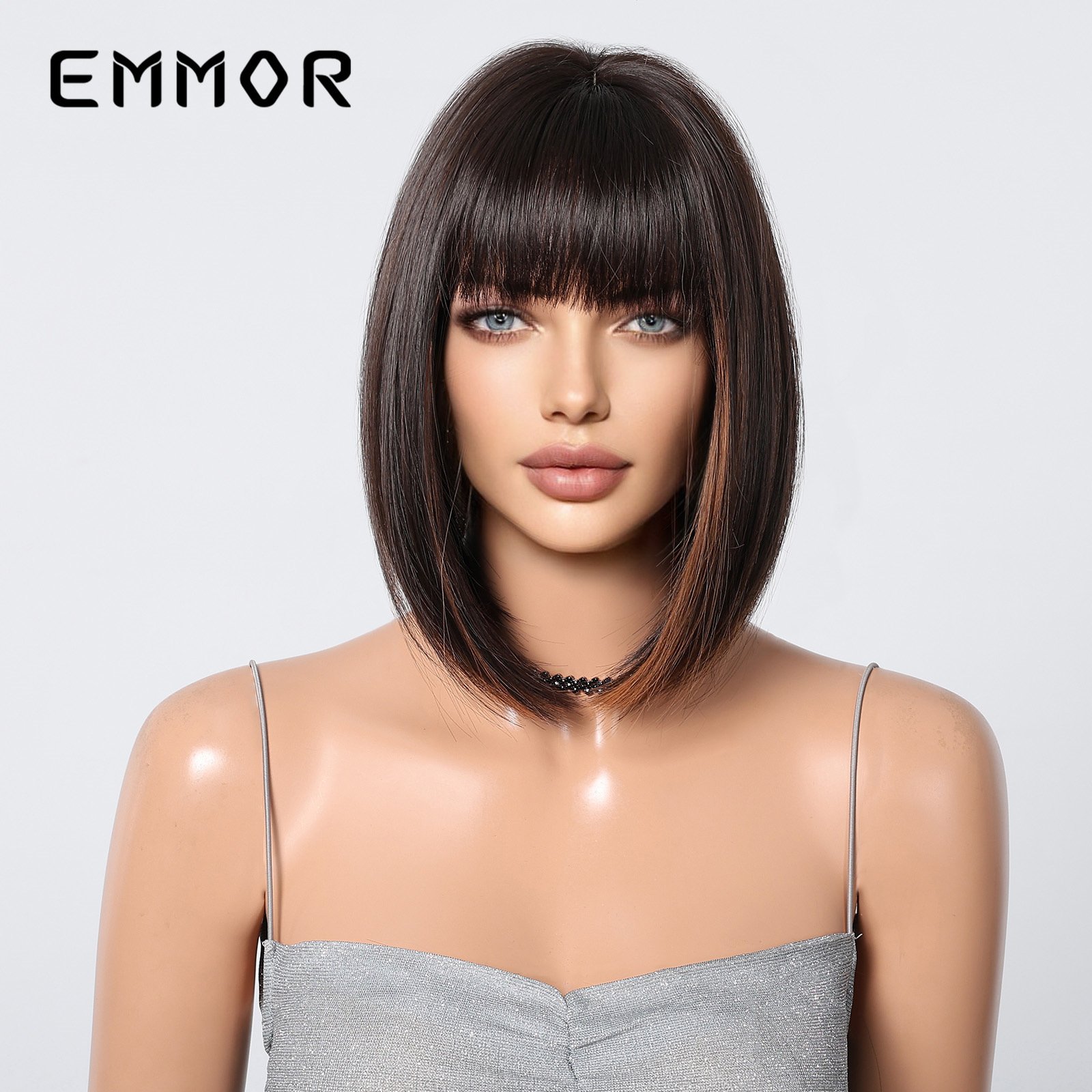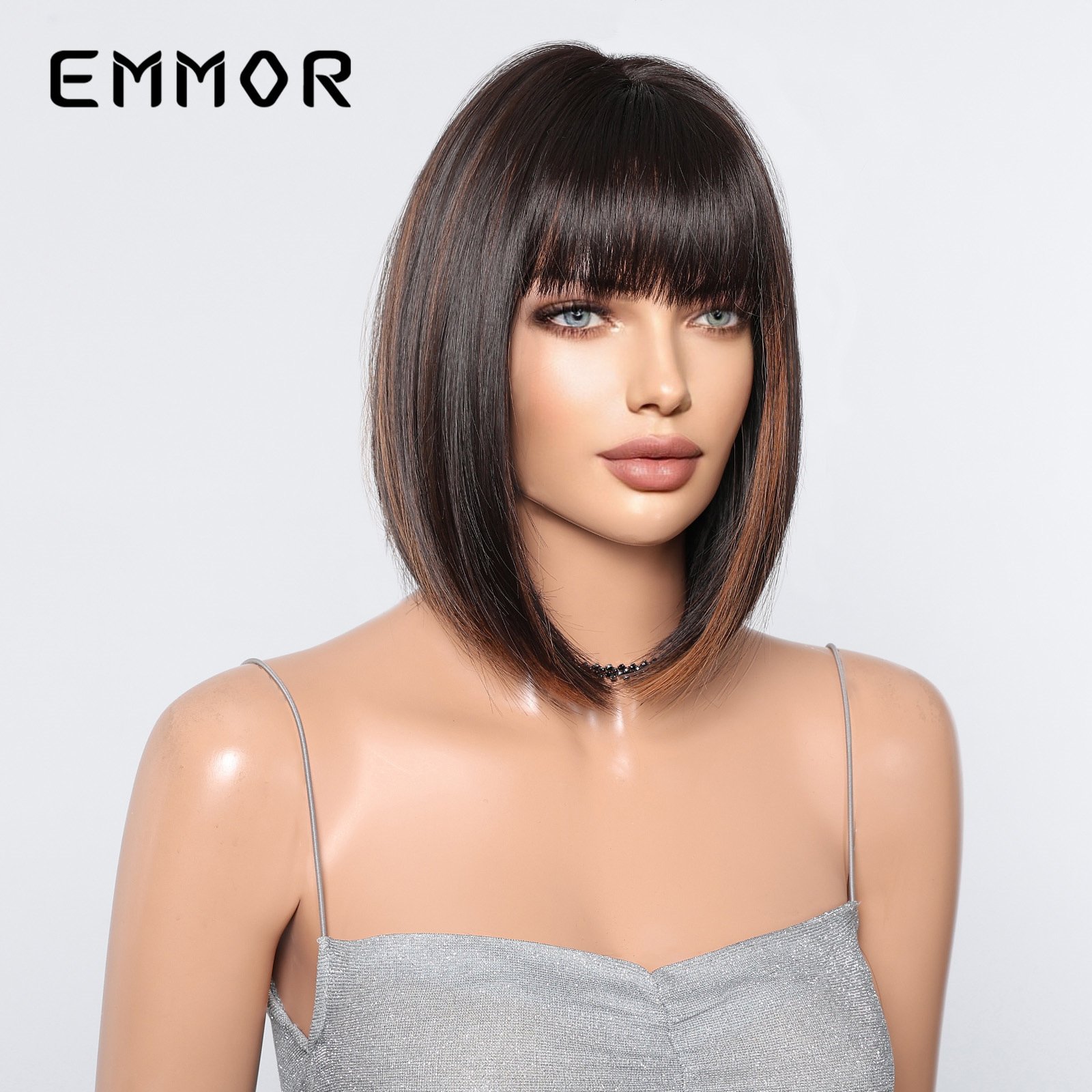 New Style Champagne Brown Short Straight Hair Fashionable Age-reducing bobo Head Natural No Mark Wig Full Head Cover