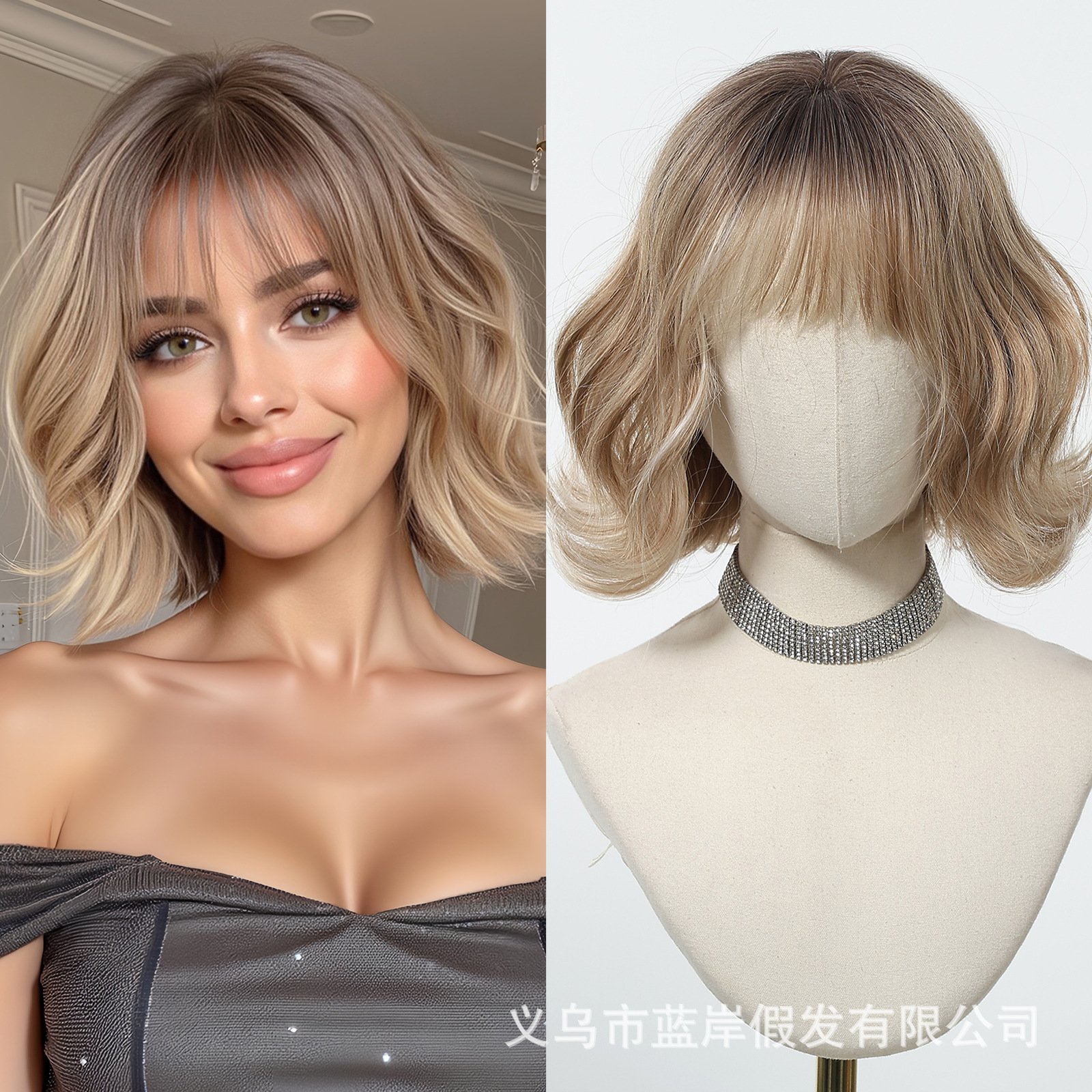 European and American short hair wig women’s full head set white gold bangs bob bob synthetic hair set wigs