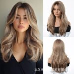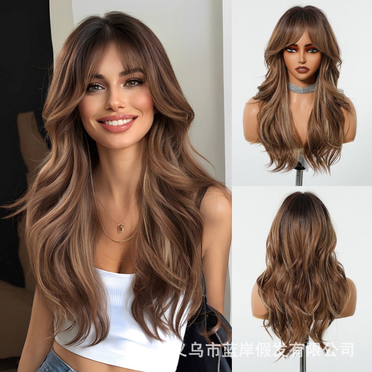 European and American wig women’s full head set simulation natural eight character bangs long curly hair atmosphere lazy style full head wig set