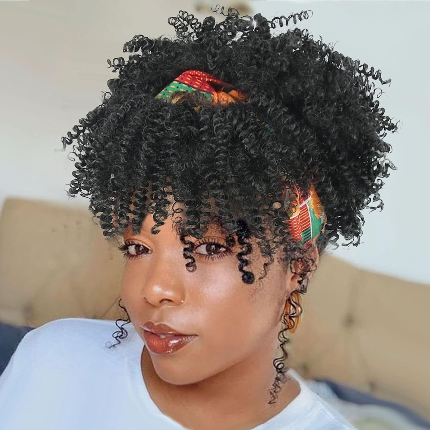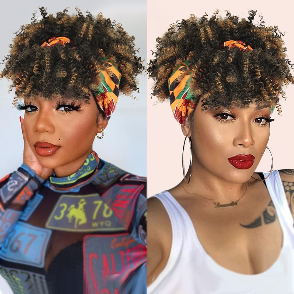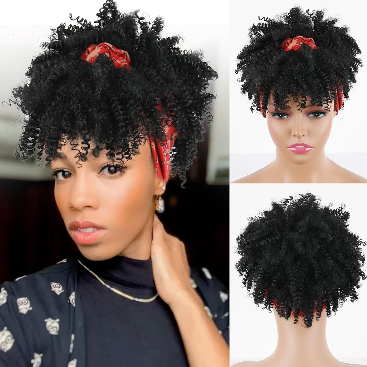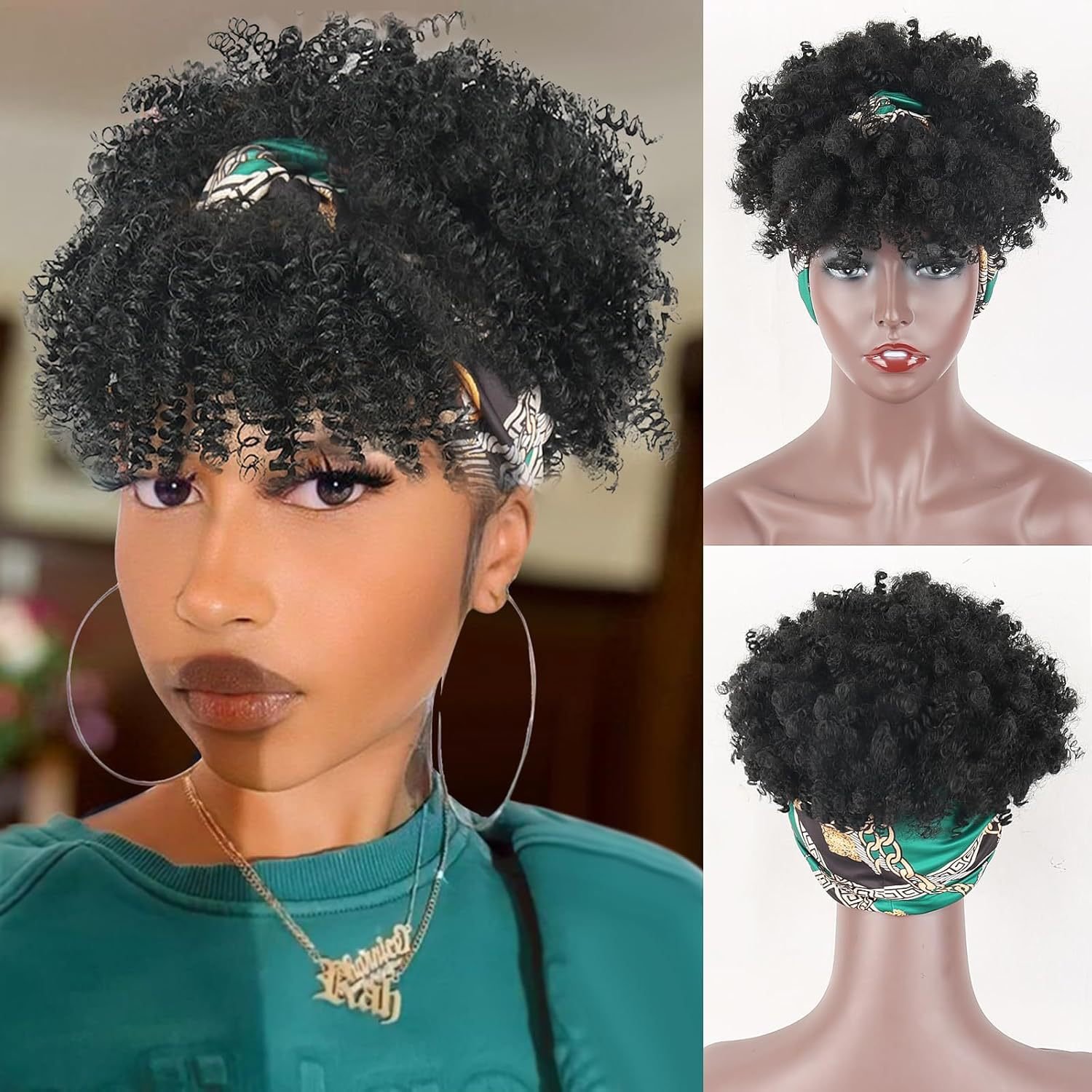 European and American wig women’s short curly hair African small volume explosive hair band hijab wig headgear