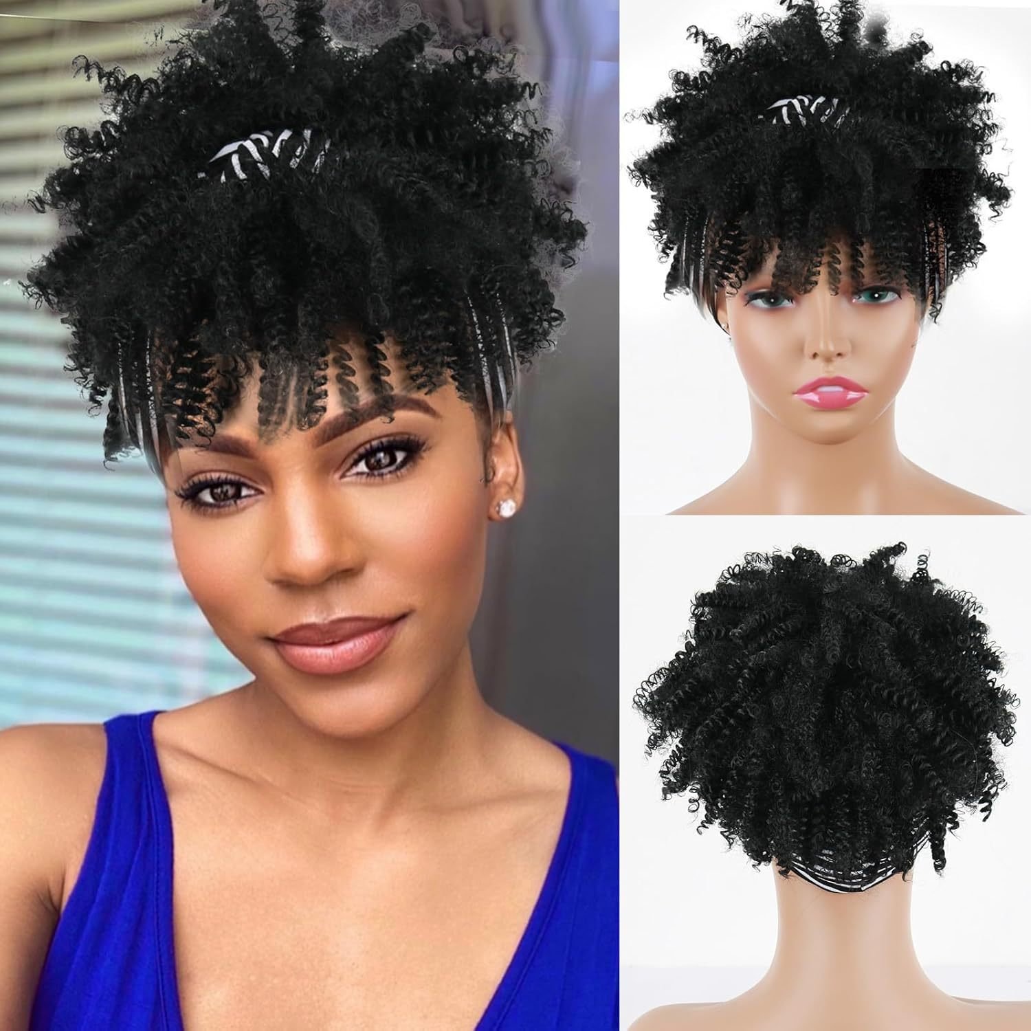 Premium Natural Black Short Curly Wig – Fashionable Synthetic Hair for Women