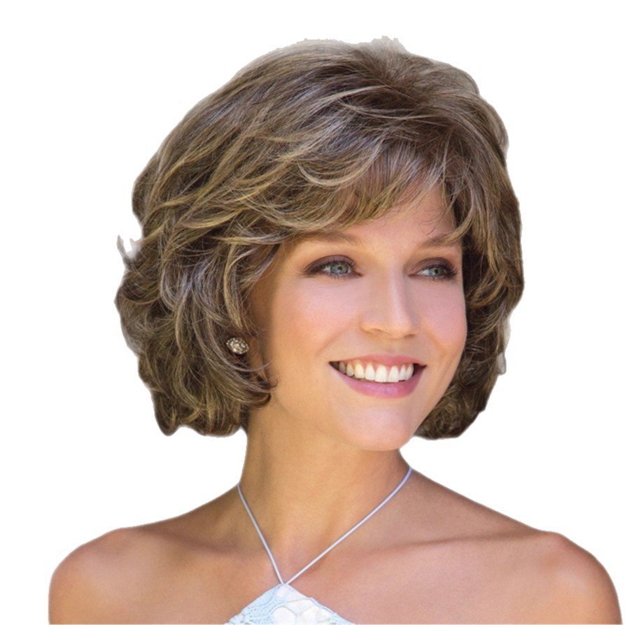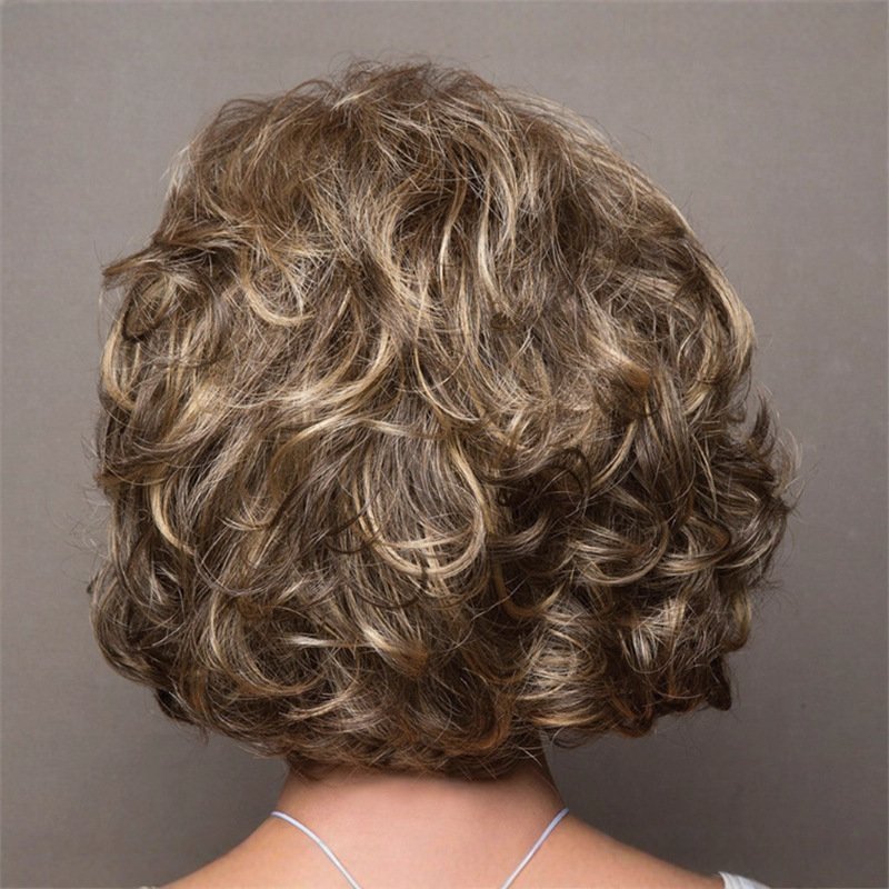 Elegant Brown Curly Wig – High-End Synthetic Fiber Headpiece