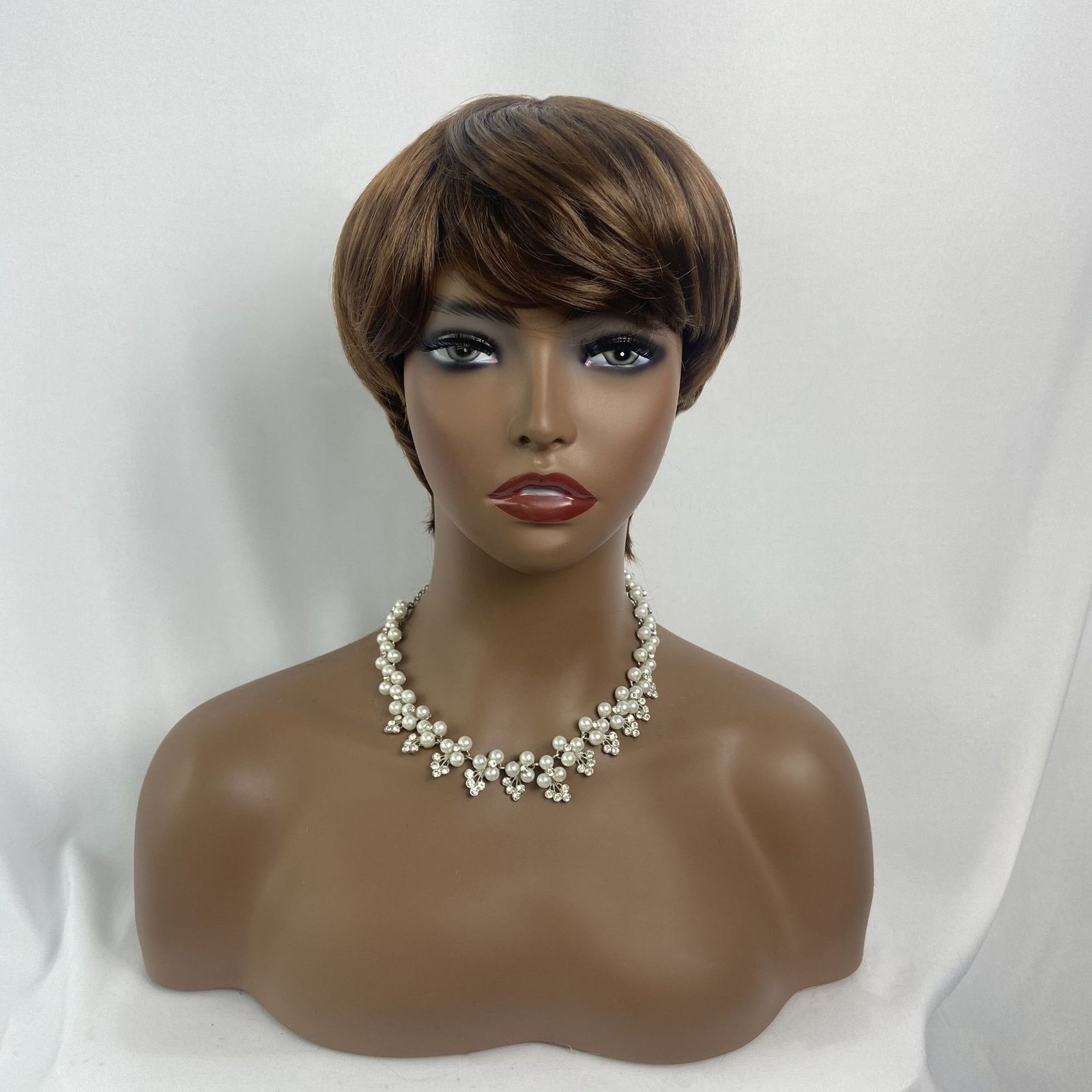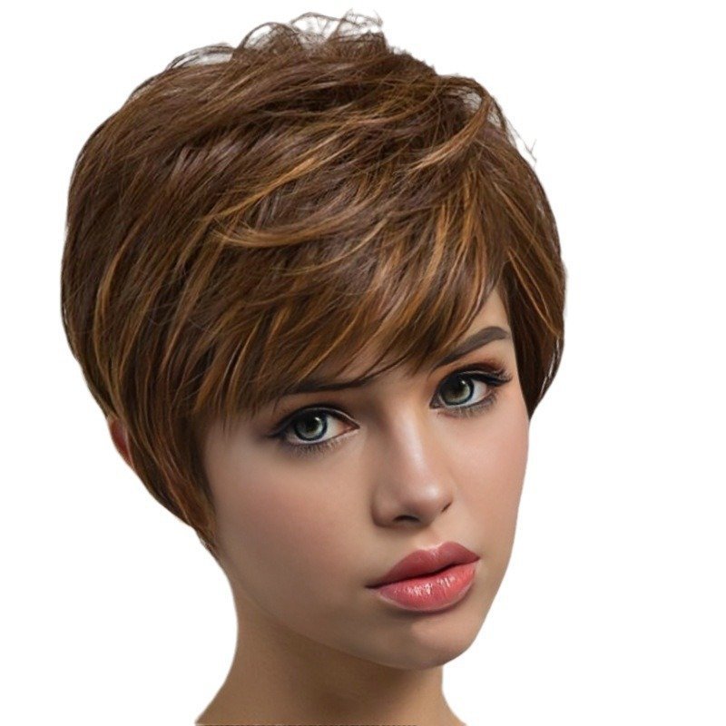 Female short straight brown mixed silk short hair fashionable synthetic headband