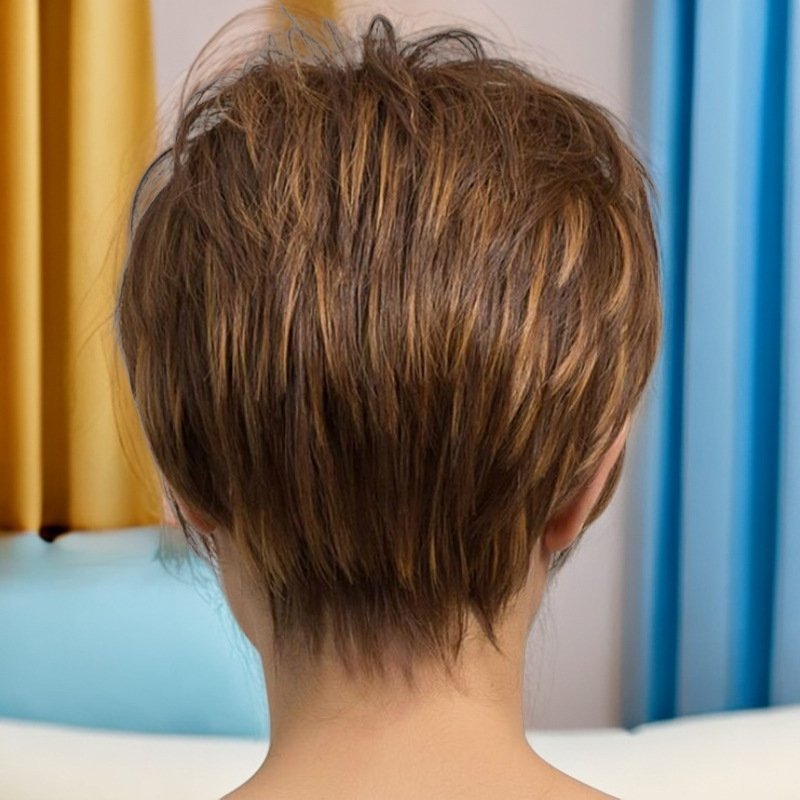 Wig Short Straight Fluffy Short Bangs Dark Brown Women’s Wig Short Curly Hair