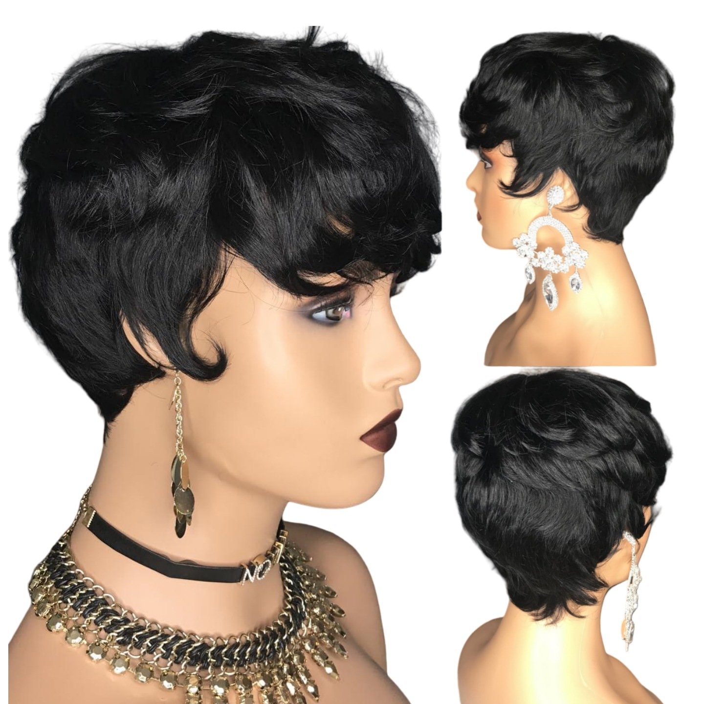 Be the first to review “Full Mechanic Real Hair Pixie Short Headgear Wig With Bangs Bob Pixie Cut Wigs”