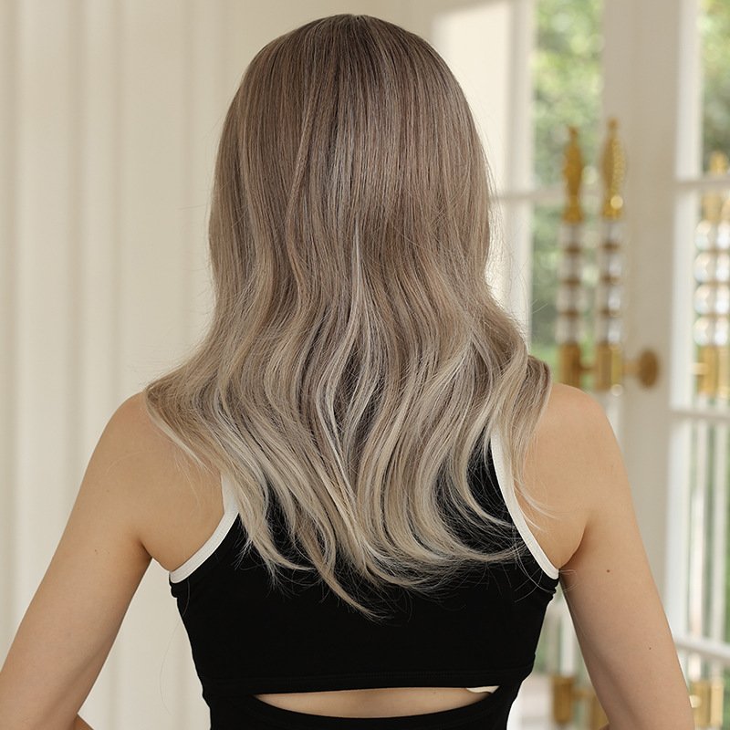 Graceful Gradient Ash Brown Long Wavy Wig – Heat-Resistant Synthetic Fiber
