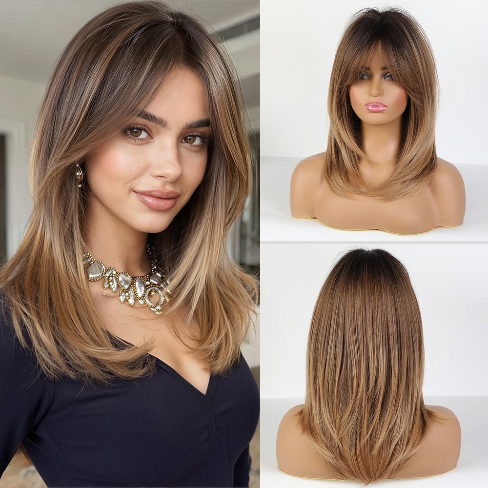 Exquisite Shoulder-Length Synthetic Wig – Fashionable Daily Wear