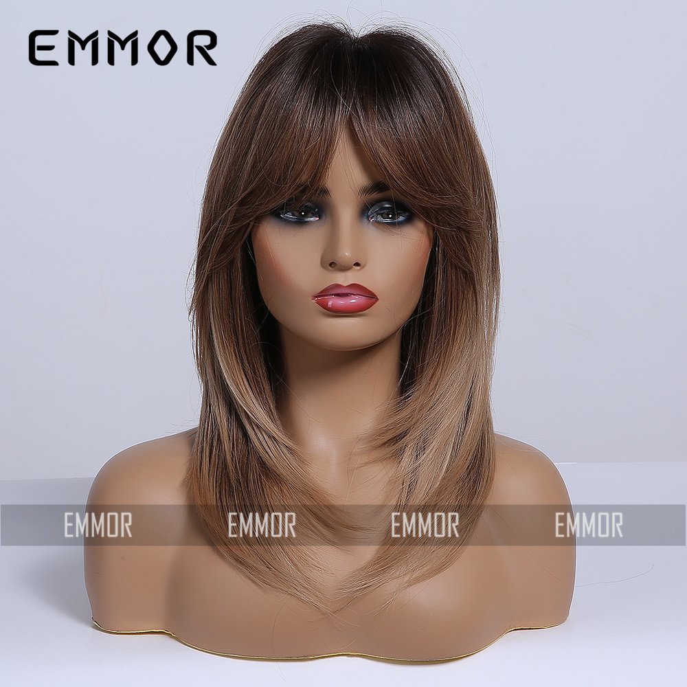 Highlight Dye Brown Wig Full Hair Figure Eight Bangs Long Curls Natural Fashion Full Top Hair Set wigs