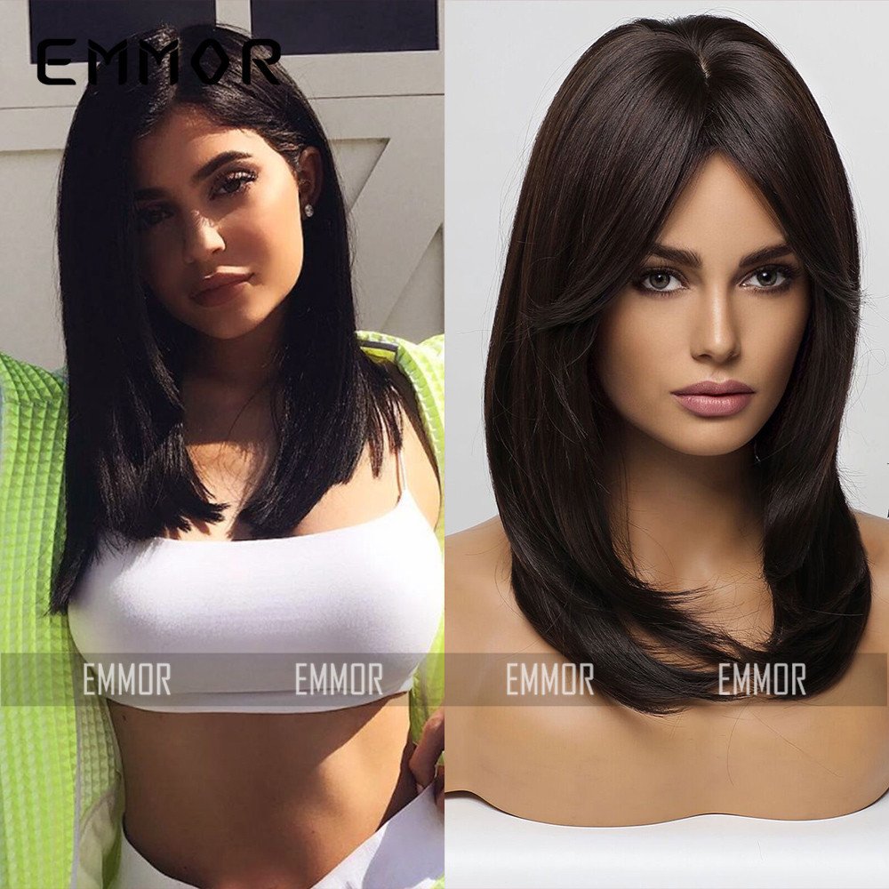 Fashionable Long Straight Bob Wig with Air Bangs – Synthetic Hair for Women